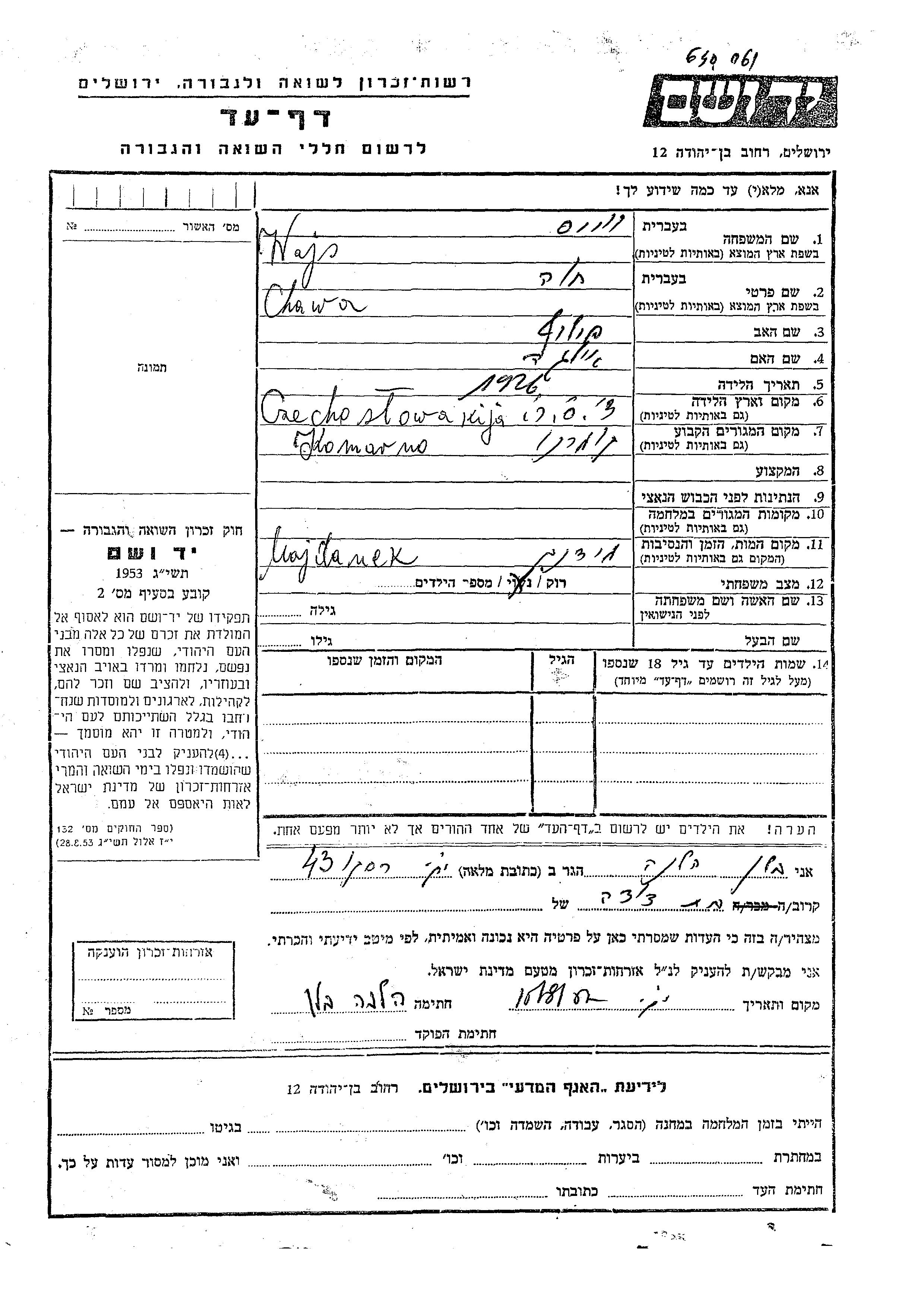 חוה Wajs נולדה בצ'כוסלובקיה בשנת 1926 לפיליף ואולגה. היא היתה רווקה. לפני מלחמת העולם השניה התגוררה בKomarno שבצ'כוסלובקיה. חוה נרצחה בשואה. מקום המוות: Majdanek שבפולין.
