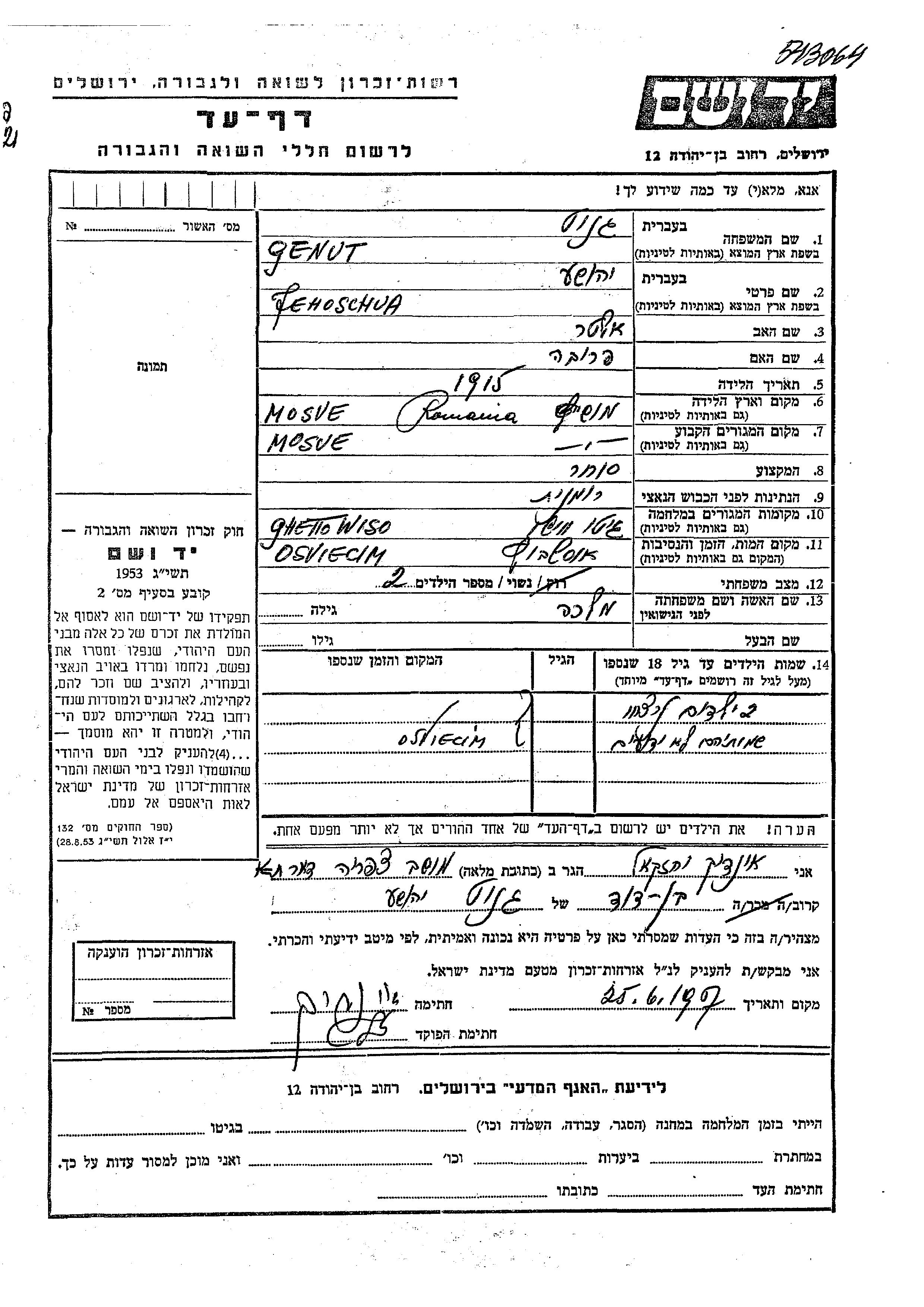 יד ושם - המפעל להנצחת השמות בדפי עד