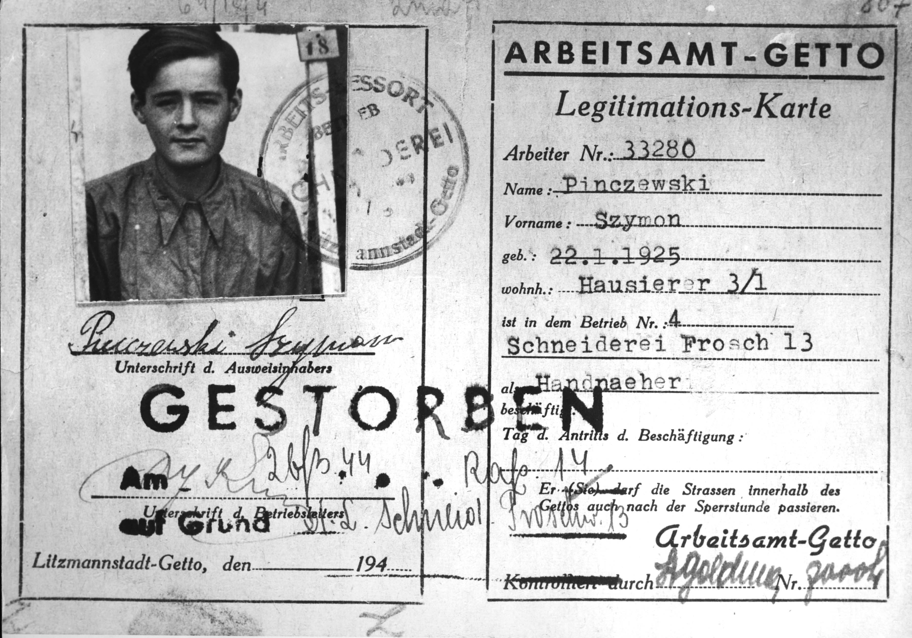 Poland ,Lodz, תעודת זהות של עובד בבית מלאכה לתפירה.