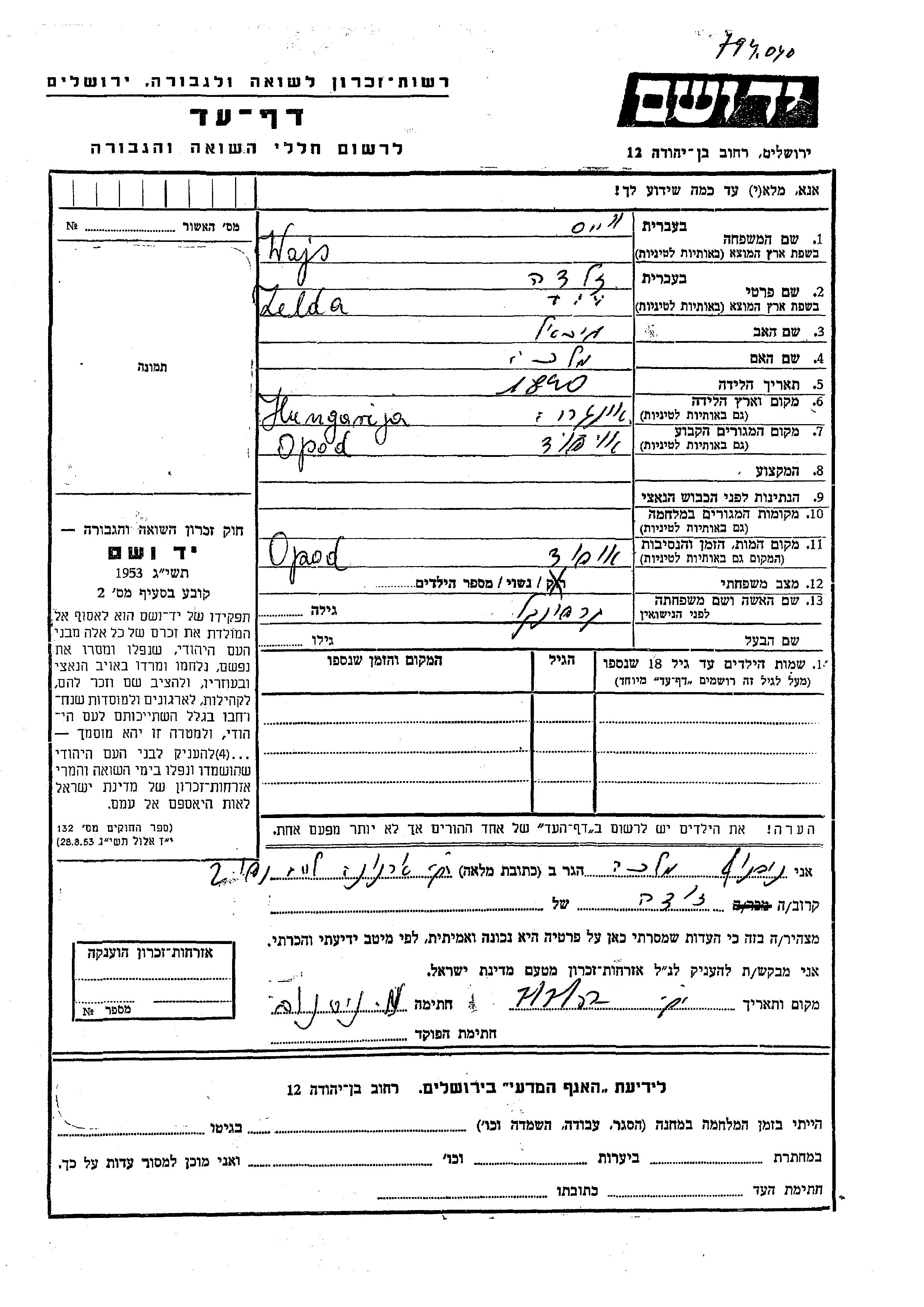 זלדה Wajs לבית גרפונקל נולדה בשנת 1890 למיכאל ומלכה. היא היתה נשואה. לפני מלחמת העולם השניה התגוררה בApold שברומניה. זלדה נרצחה בשואה. מקום המוות: Apold שברומניה.