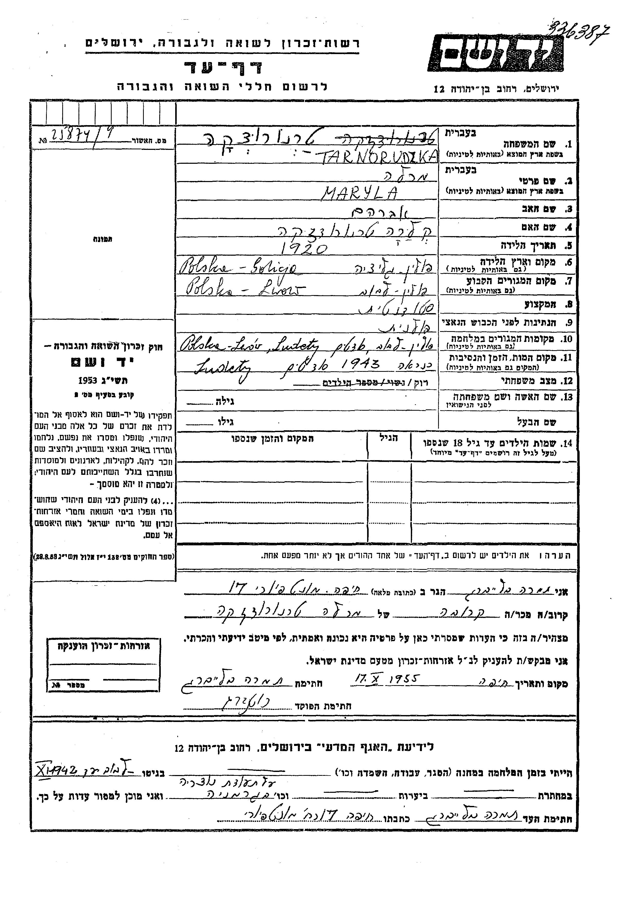 Tarnorudzka Maryla מרלה 1920 Lwow, פולין דף-עד