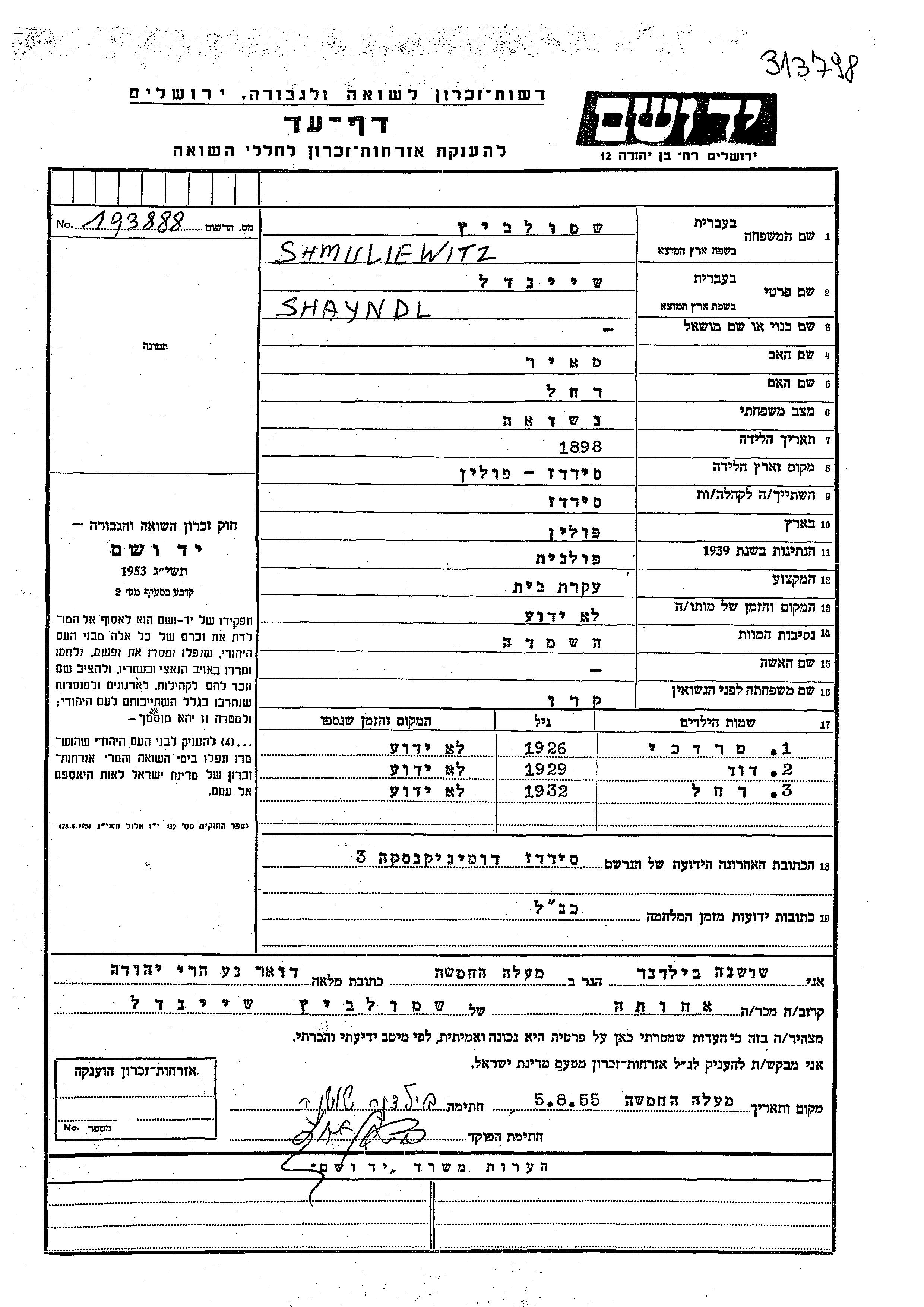 Shmuliewitz Shayndl 1898 Sieradz, פולין דף-עד
