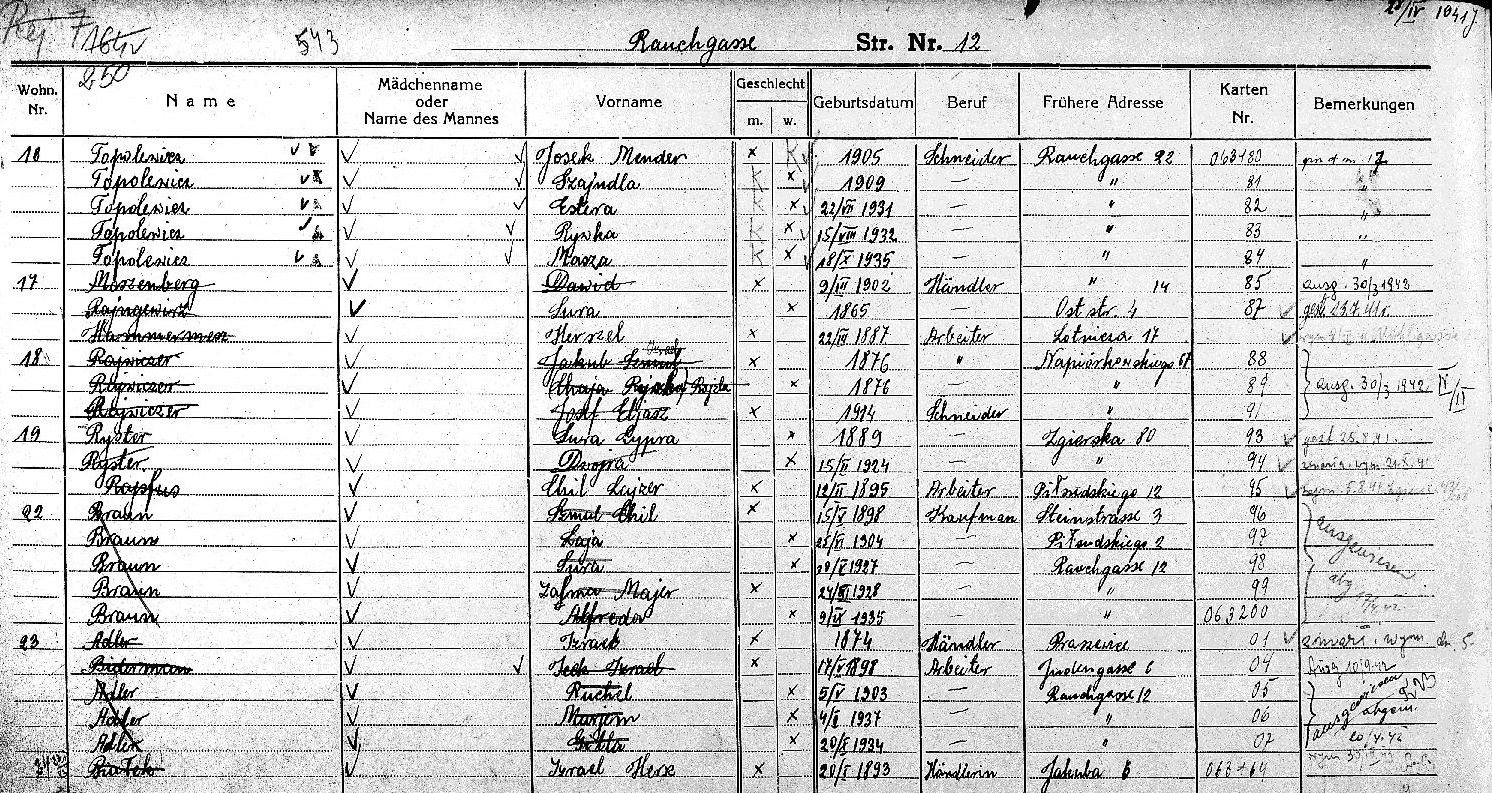 בראון Zalma Majer 1928 Lodz, פולין רשימת אסירים בגטו לודז'