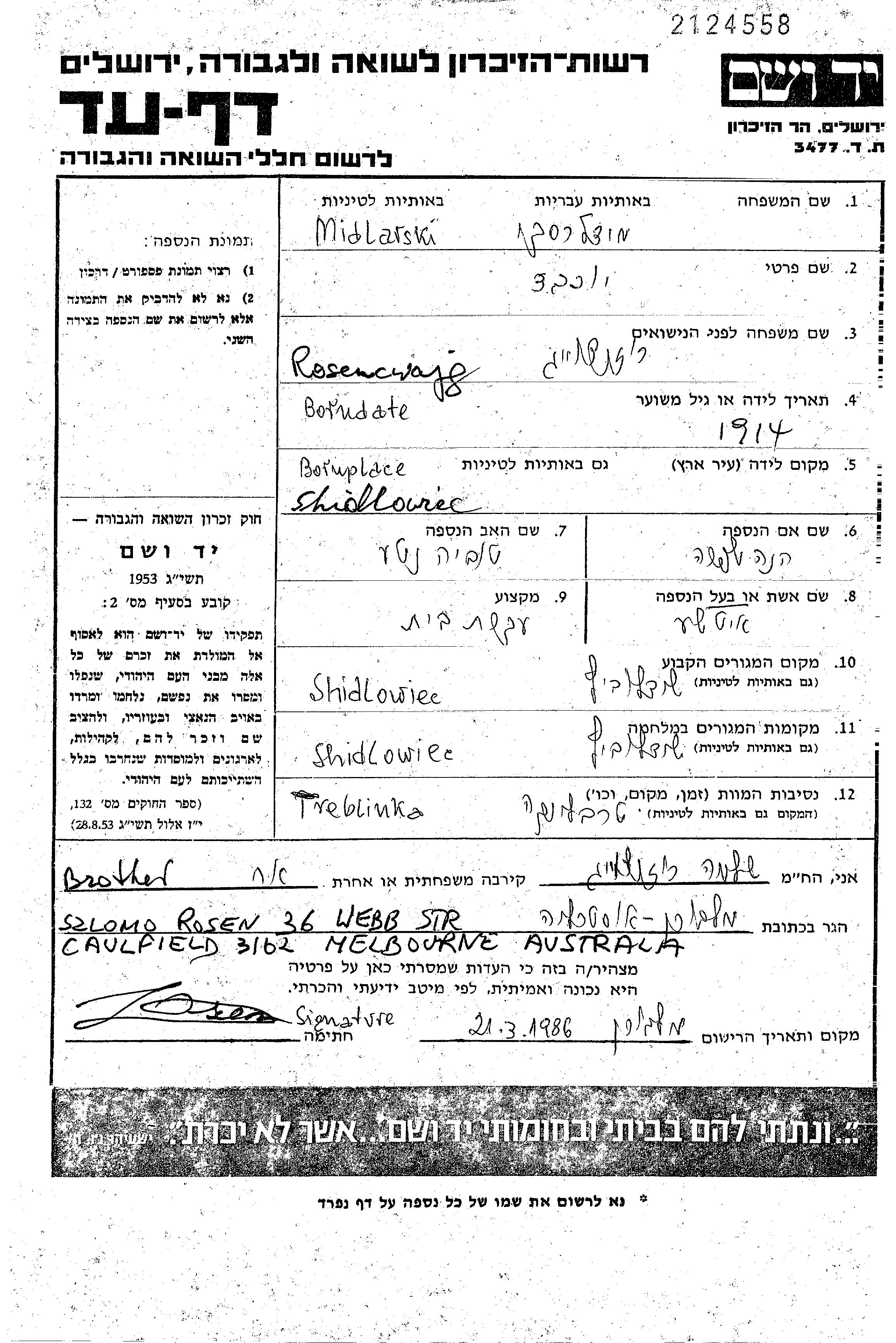 מידלארסקי יוכבד Szydlowiec, פולין רשימת יהודים נרצחים מתוך ספרי יזכור