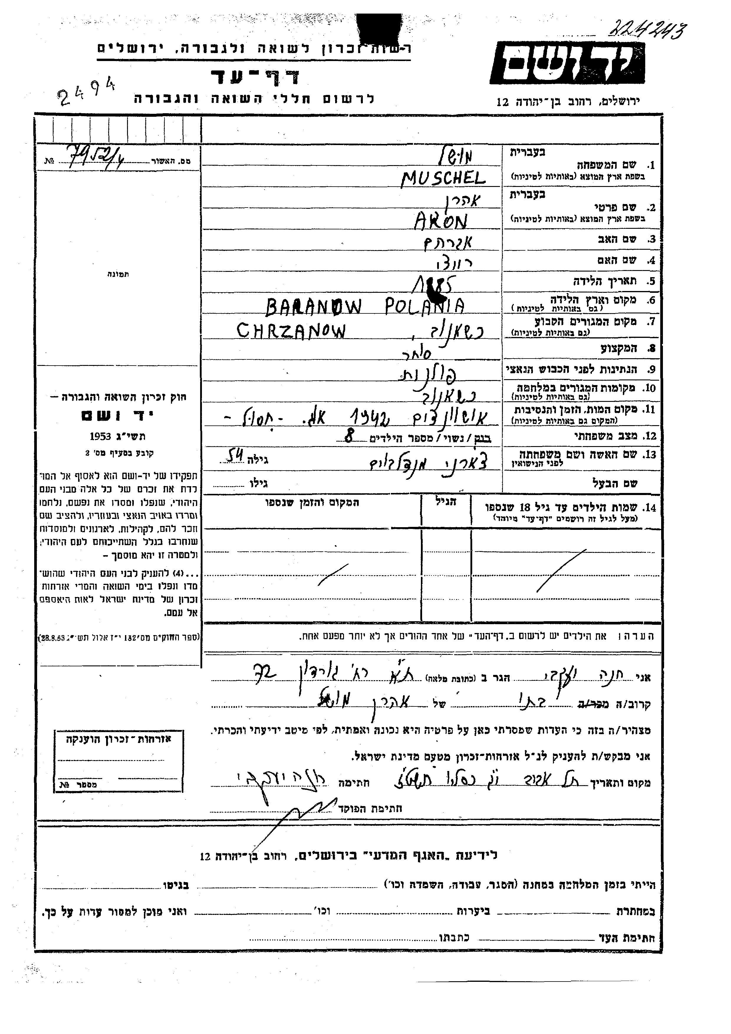 יד ושם - המפעל להנצחת השמות בדפי עד