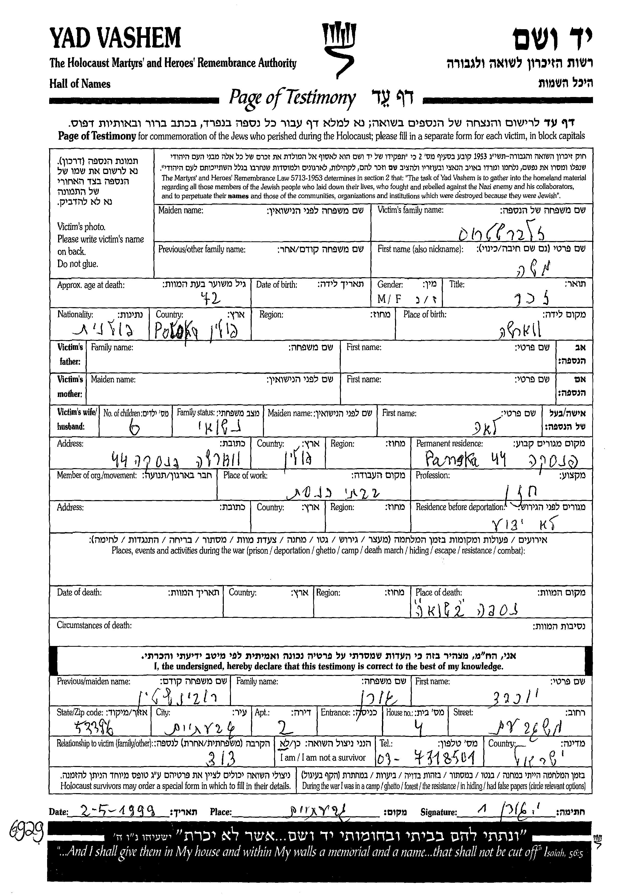יד ושם - המפעל להנצחת השמות בדפי עד
