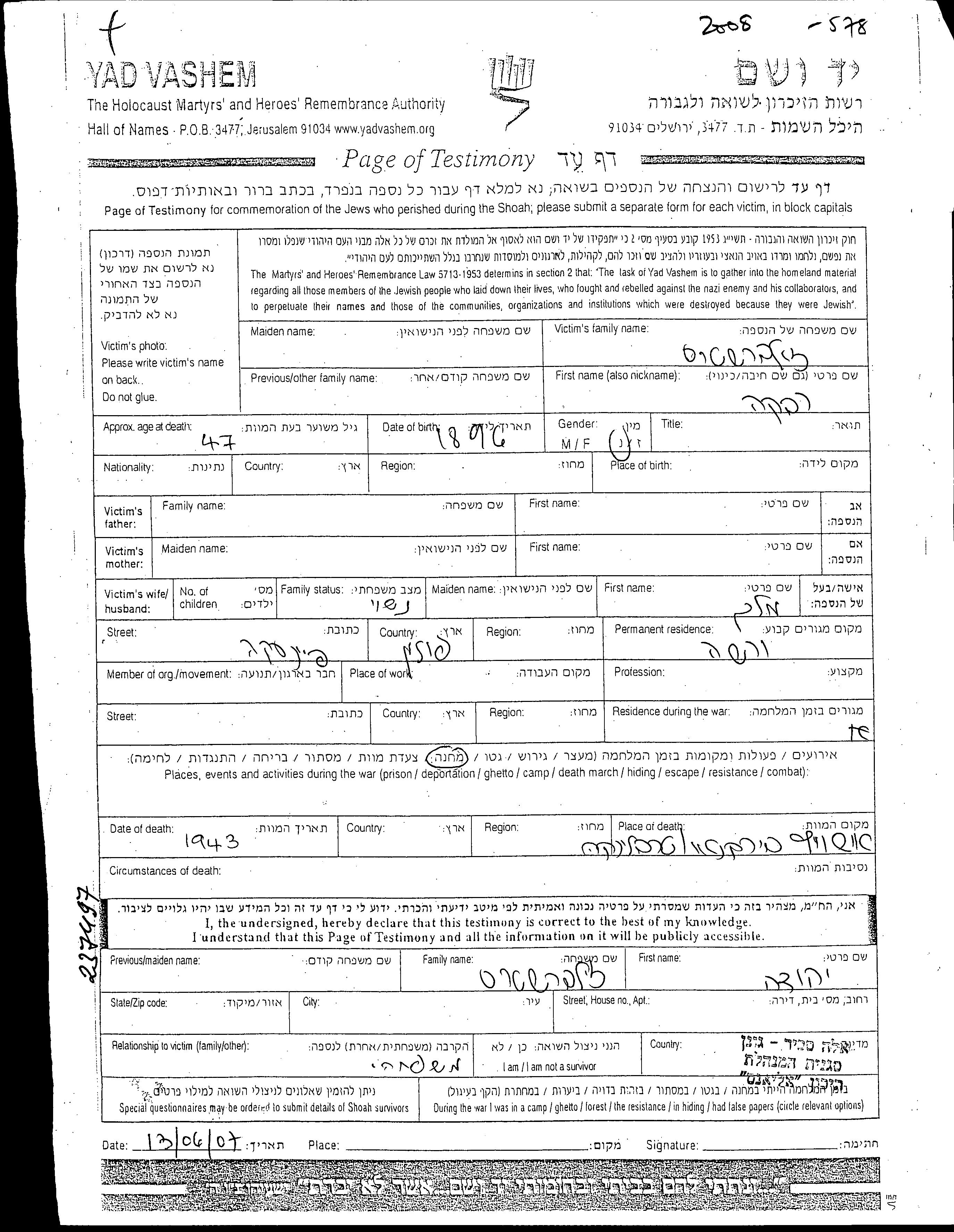 יד ושם - המפעל להנצחת השמות בדפי עד