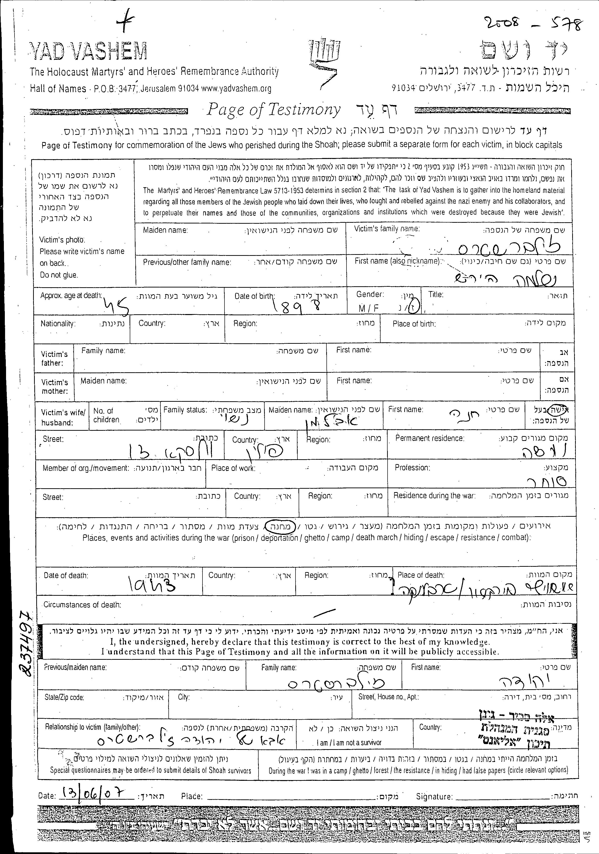 יד ושם - המפעל להנצחת השמות בדפי עד