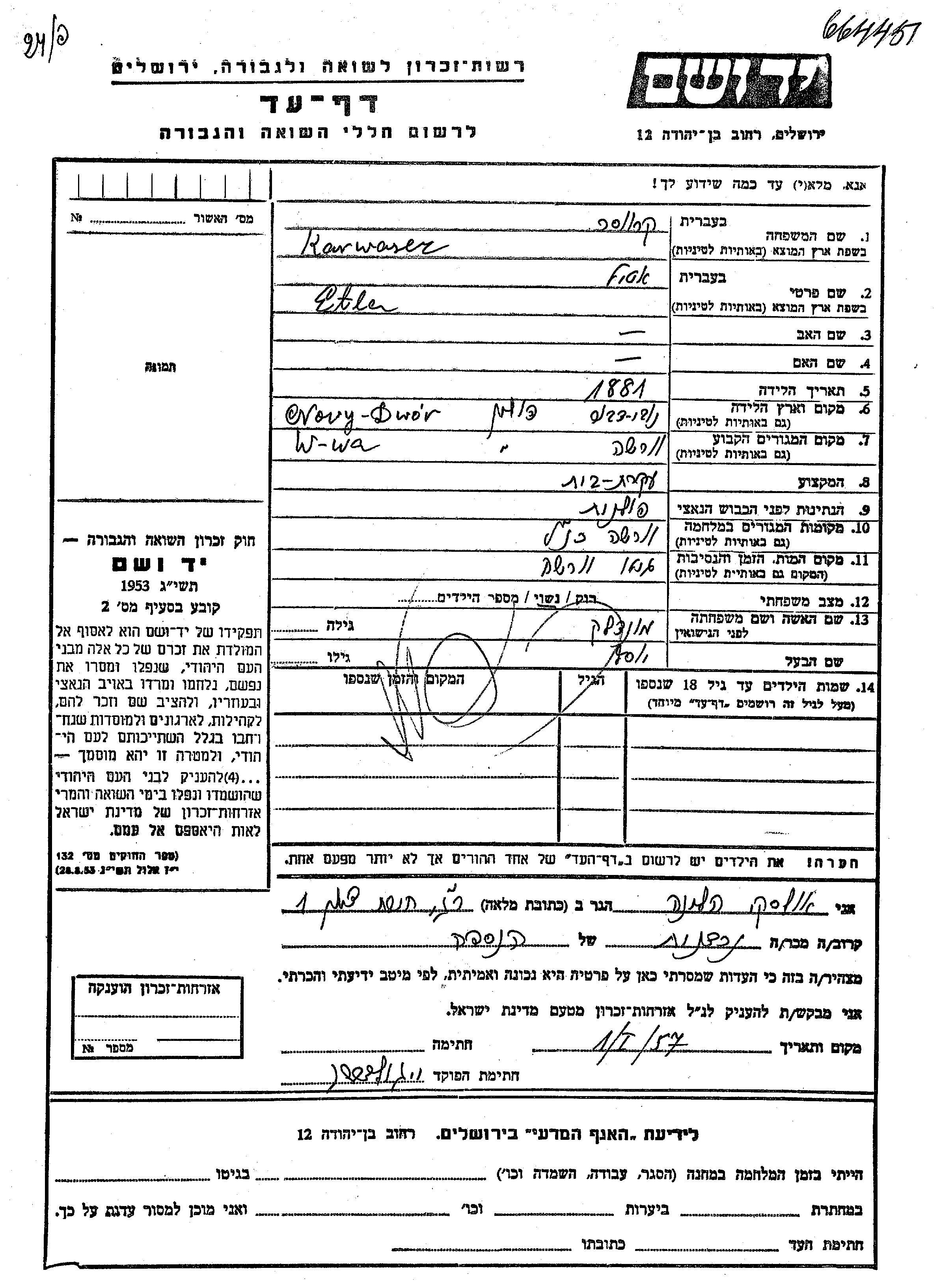 יד ושם - המפעל להנצחת השמות בדפי עד