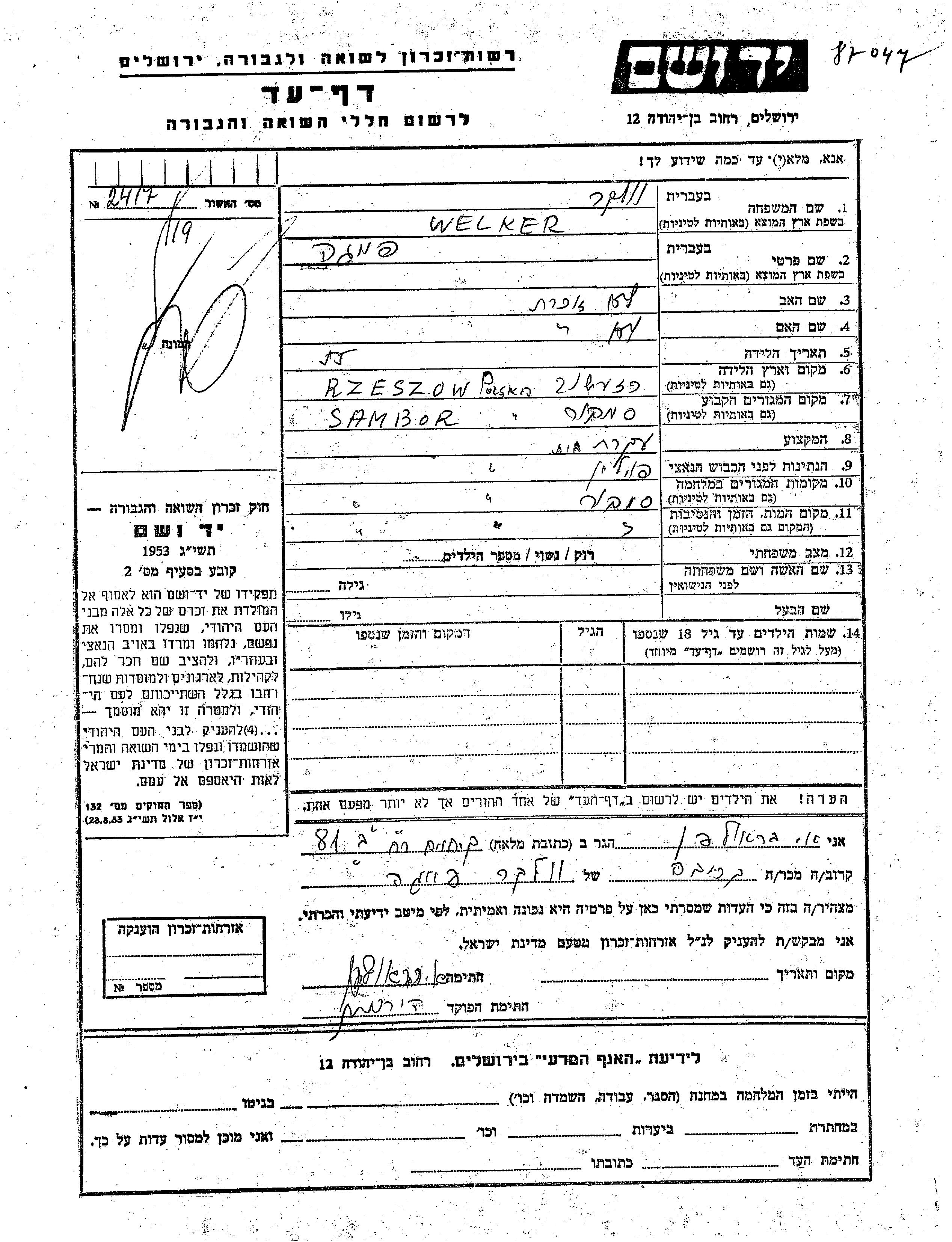 חיפוש שם מוסר דף העד. חיפוש לפי כל שם פרטי, כולל כינוי או שם חיבה