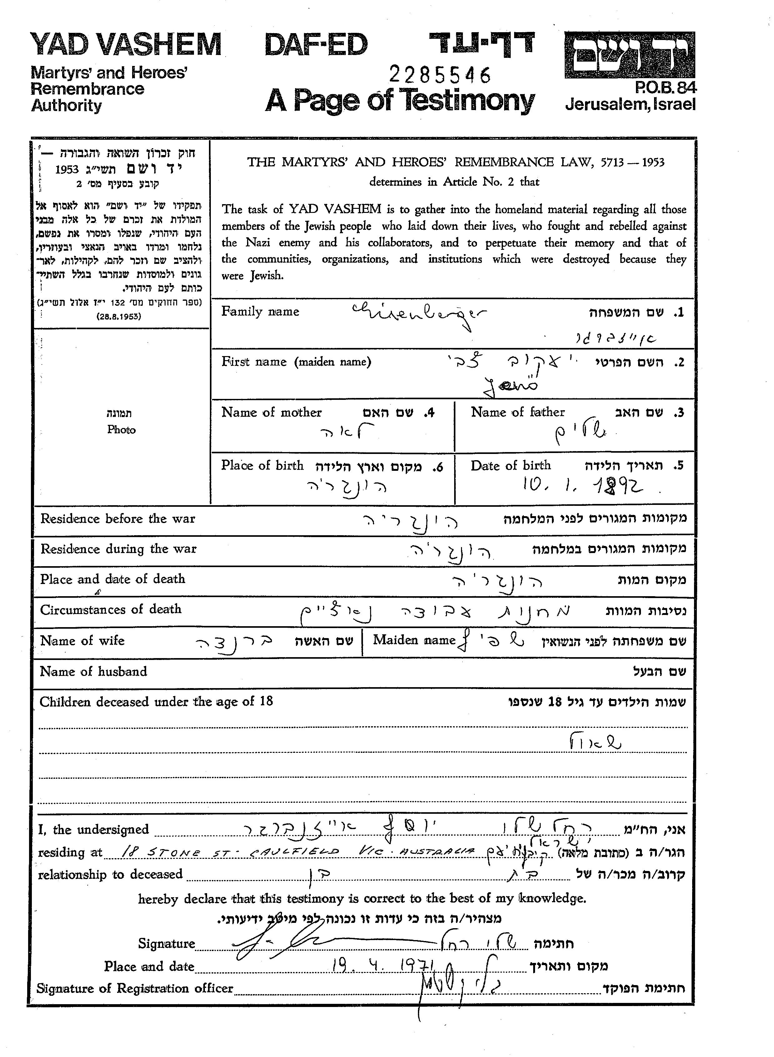 יד ושם - המפעל להנצחת השמות בדפי עד