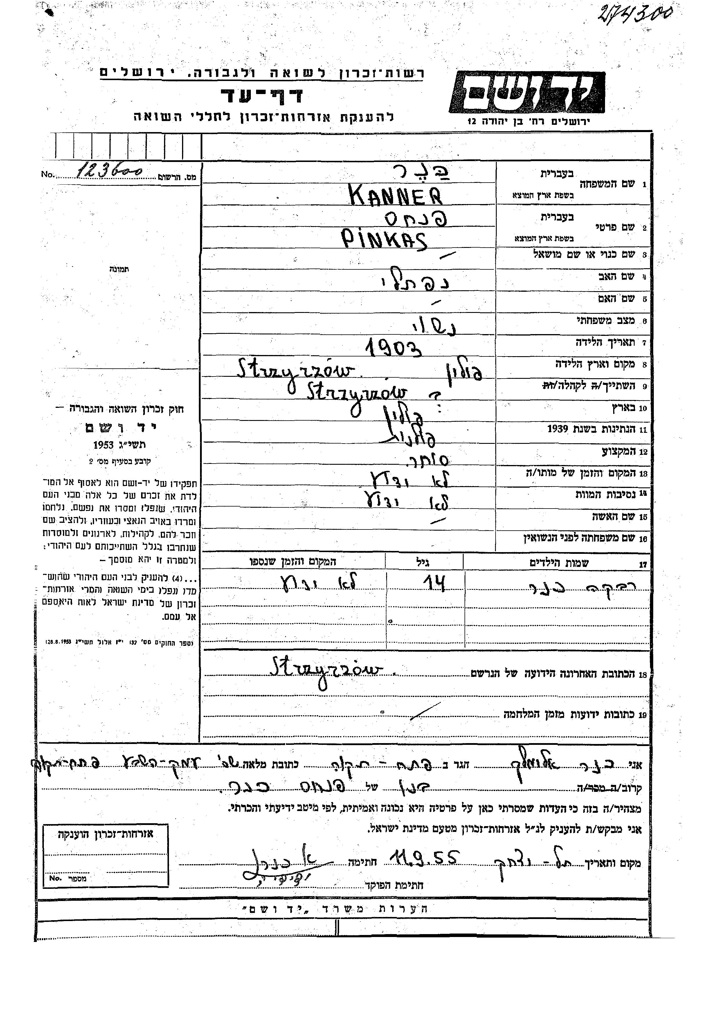 קנר פנחס Strzyzow, פולין רשימת יהודים נרצחים מתוך ספרי יזכור