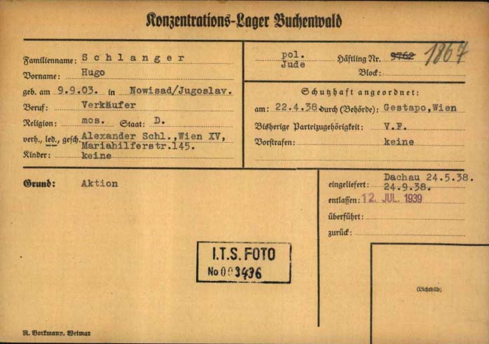 הוגו Schlanger נולד בUjvidek שביוגוסלביה בשנת 1903. הוא היה סוחר. לפני מלחמת העולם השניה התגורר בMiramas שבצרפת.