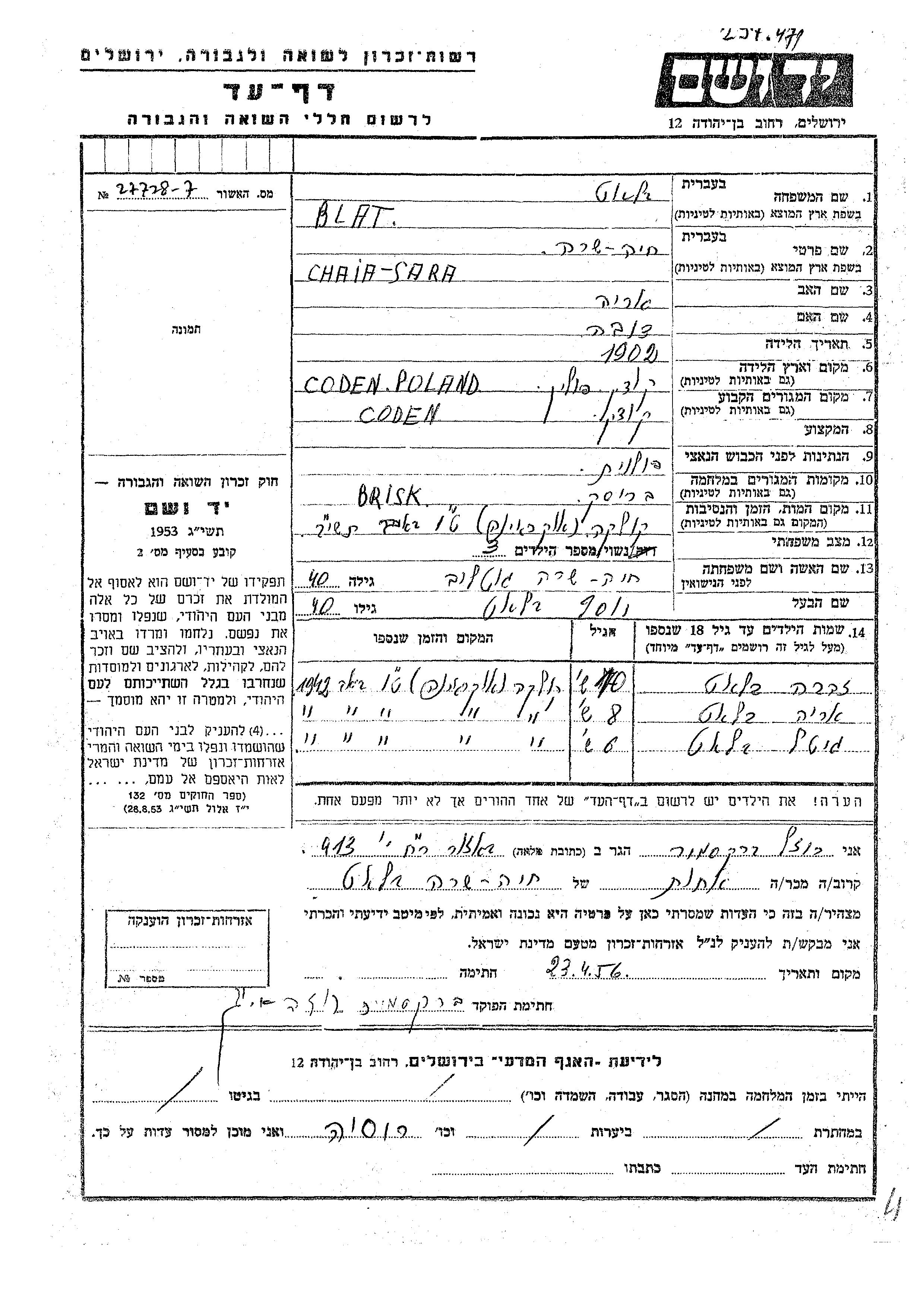 יד ושם - המפעל להנצחת השמות בדפי עד