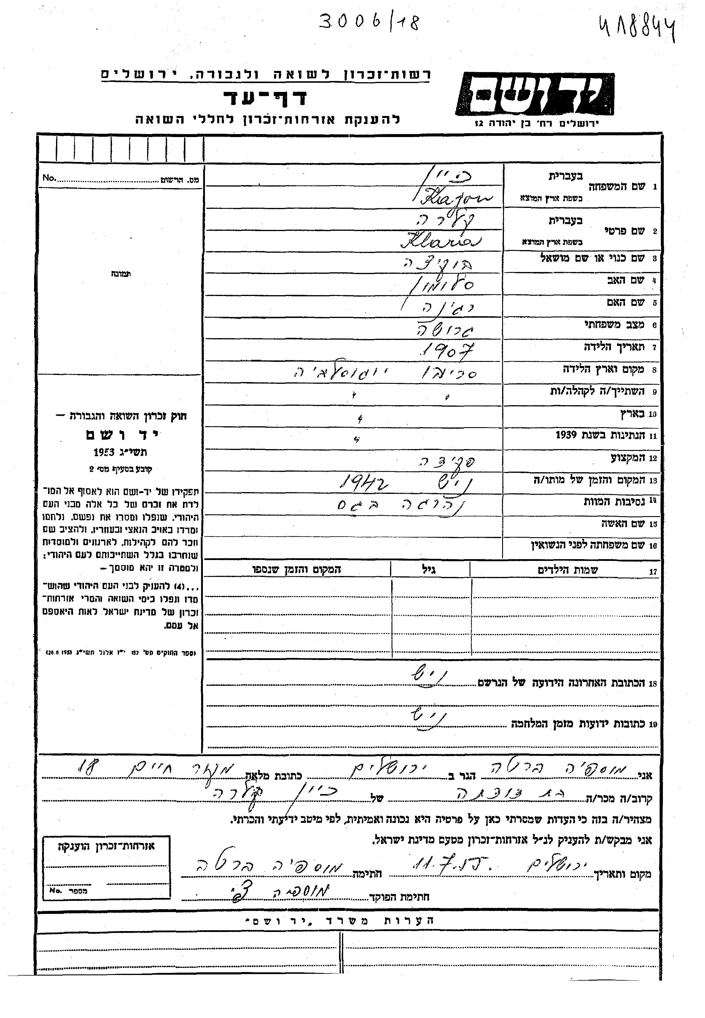 חיפוש שם מוסר דף העד. חיפוש לפי שם משפחה; כולל גם תוצאות חיפוש לפי שם הנעורים של אישה לפני הנישואין