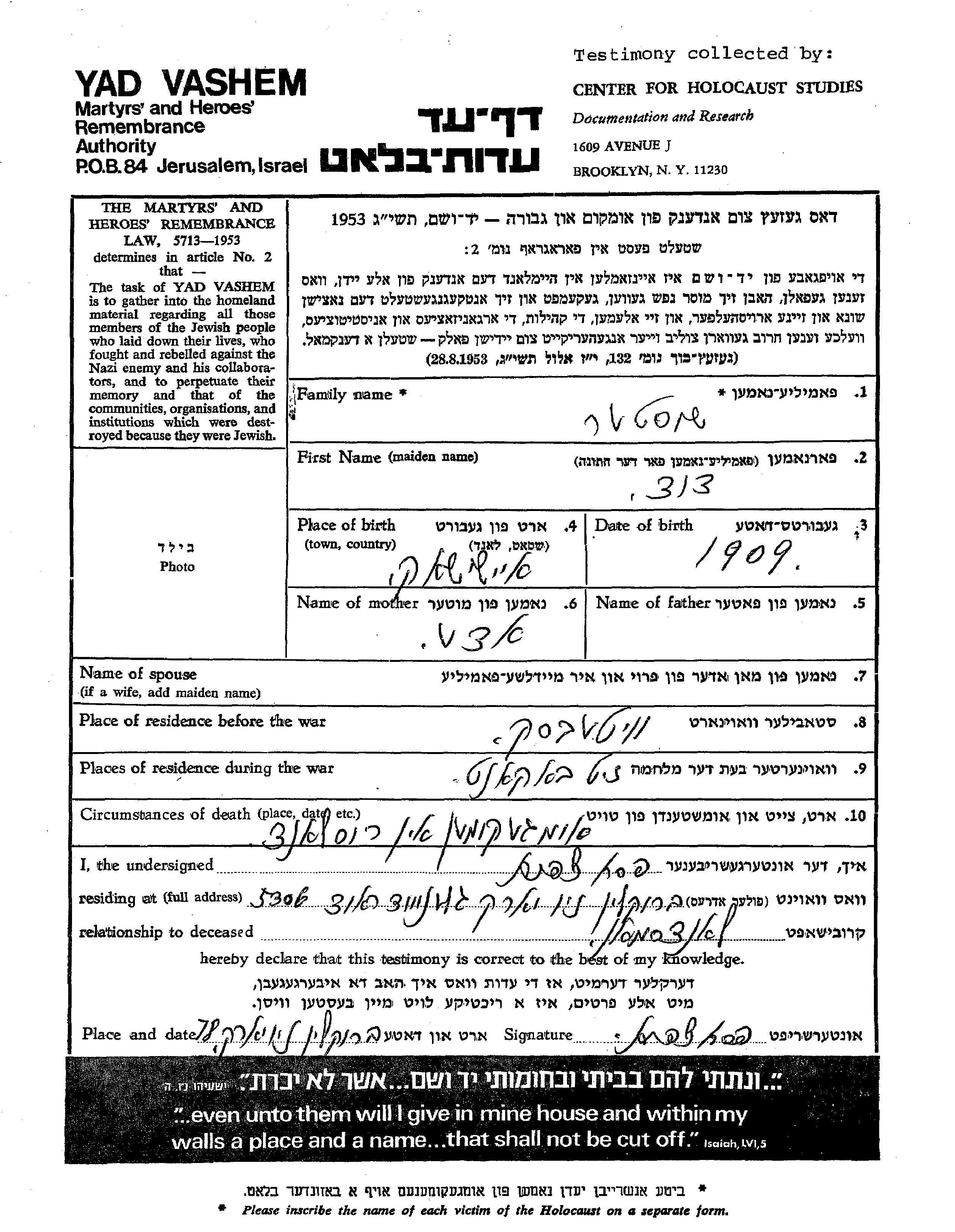 דוד שוסטר נולד בEjszyszki שבפולין בשנת 1909 לאדע. לפני מלחמת העולם השניה התגורר בVitebsk שבביאלורוסיה (ברה"מ). דוד נרצח בשואה. מקום המוות: רוסיה (ברה"מ).