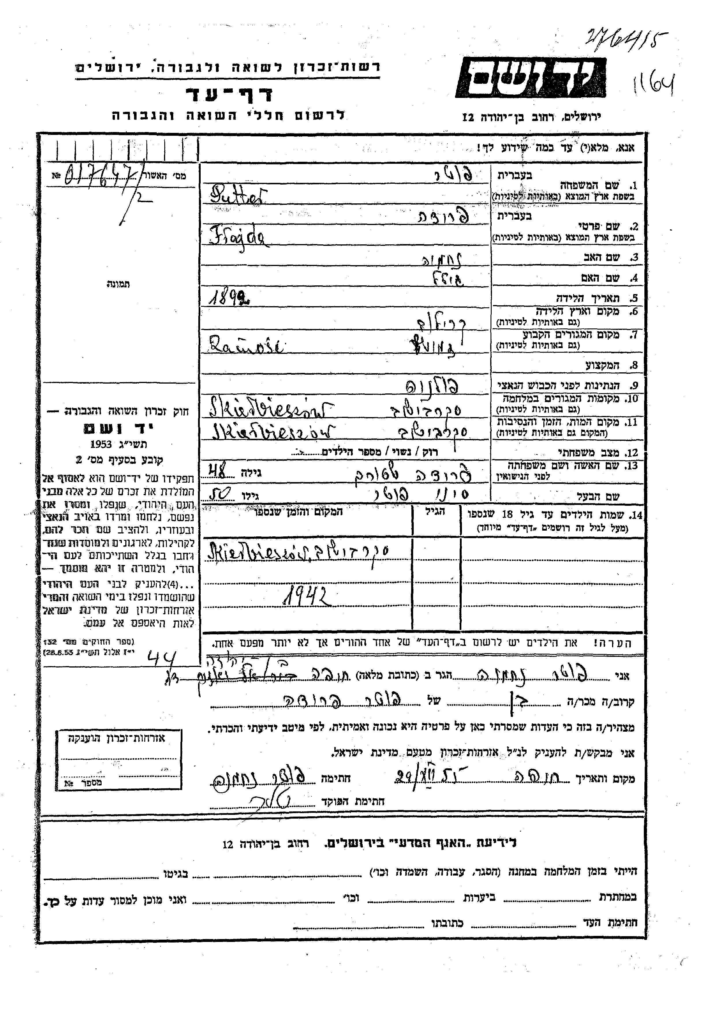 היא נרצחה בשואה. מקום המוות: מקום לא רשום.