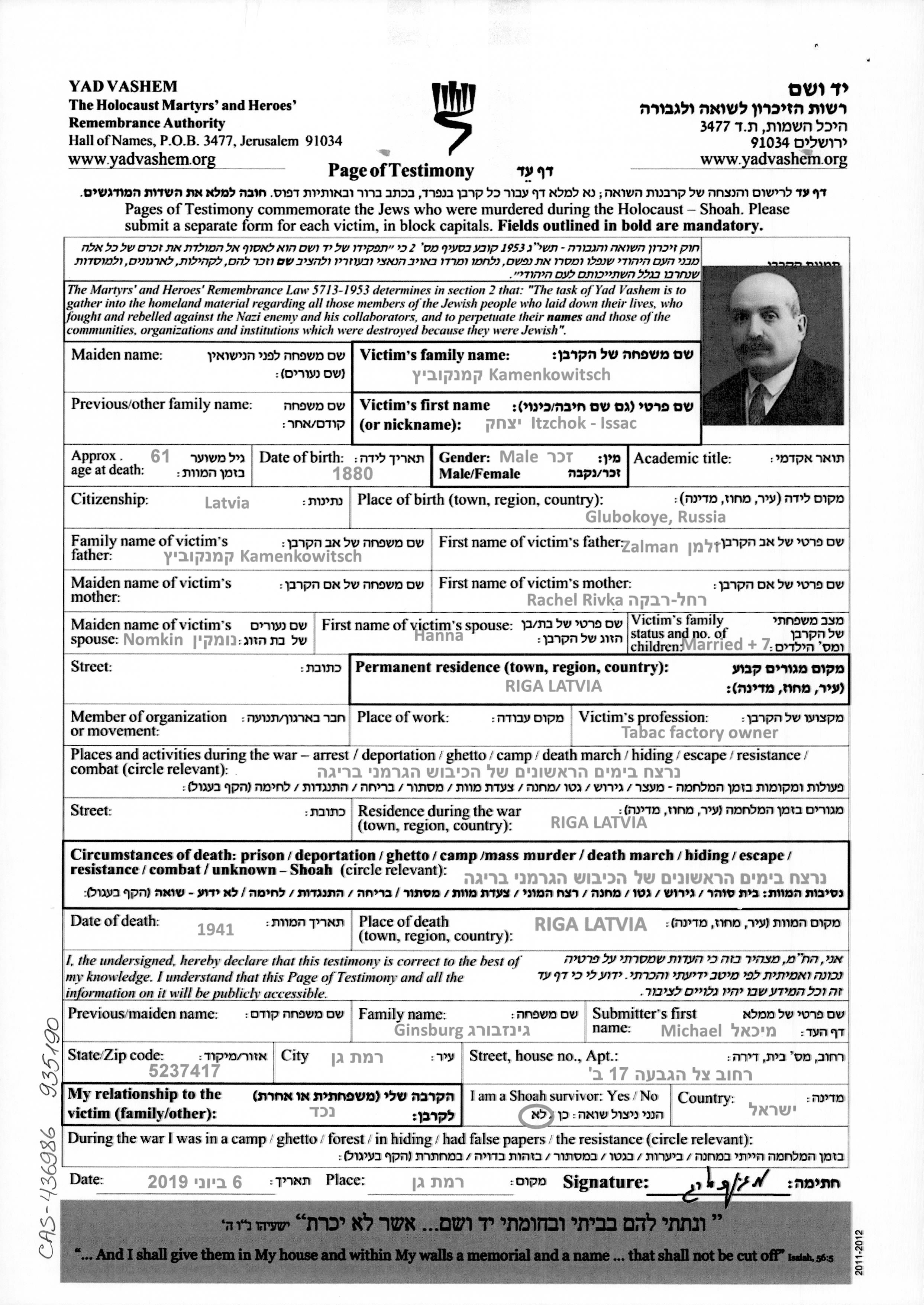 Kamenkowitsch Itzchok 1880 Riga, לטביה דף-עד