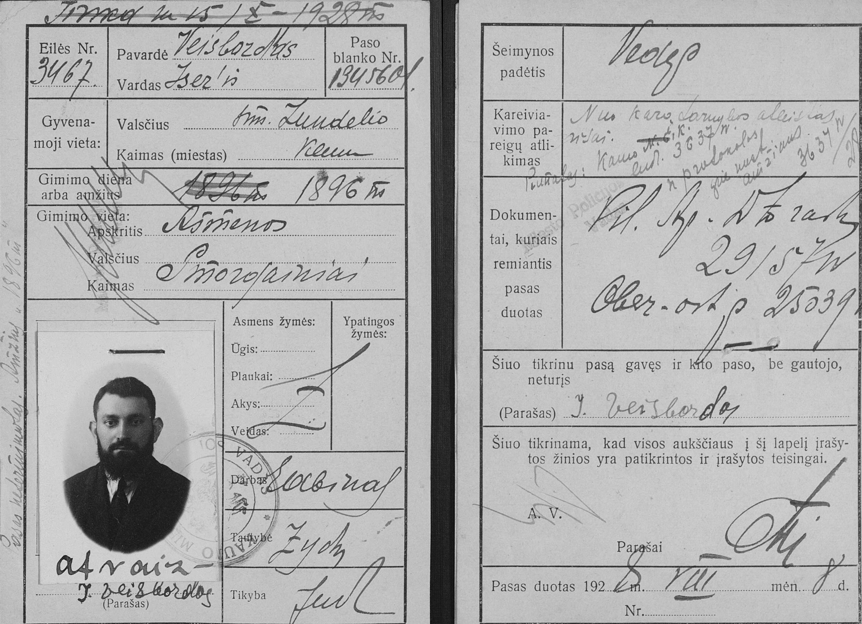 Veisbordas Iseris 1896 Darbėnai, ליטא דרכון
