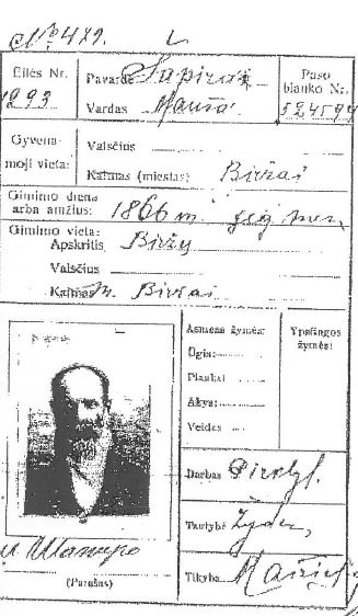 שפירו Mausa 1866 Biržai, ליטא דרכון