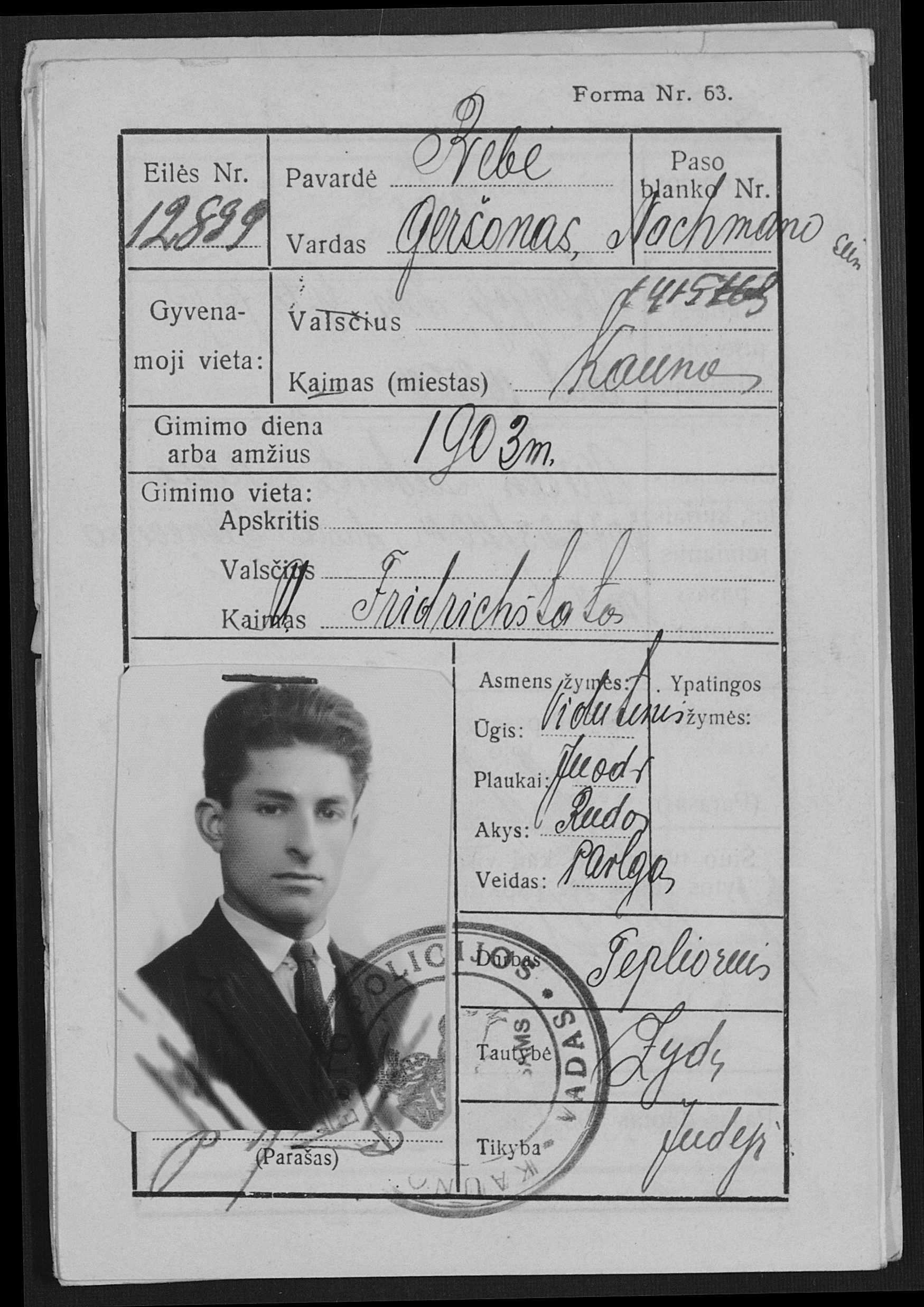 Rebe Gersonas 1903 Kauen, ליטא דרכון