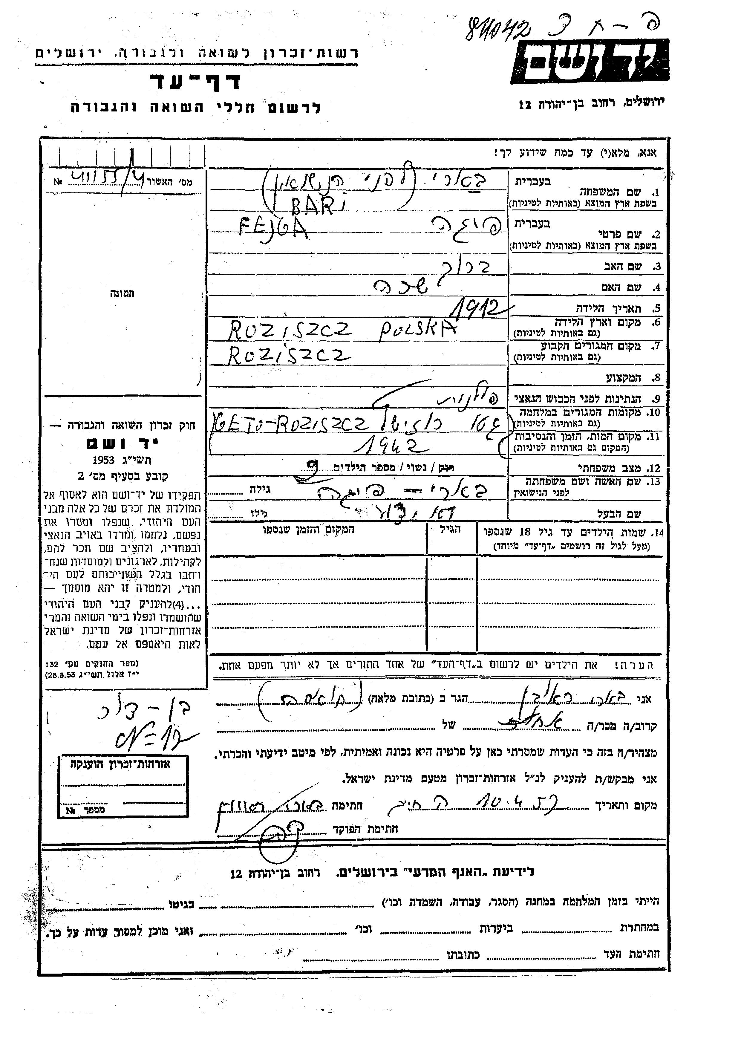 יד ושם - המפעל להנצחת השמות בדפי עד