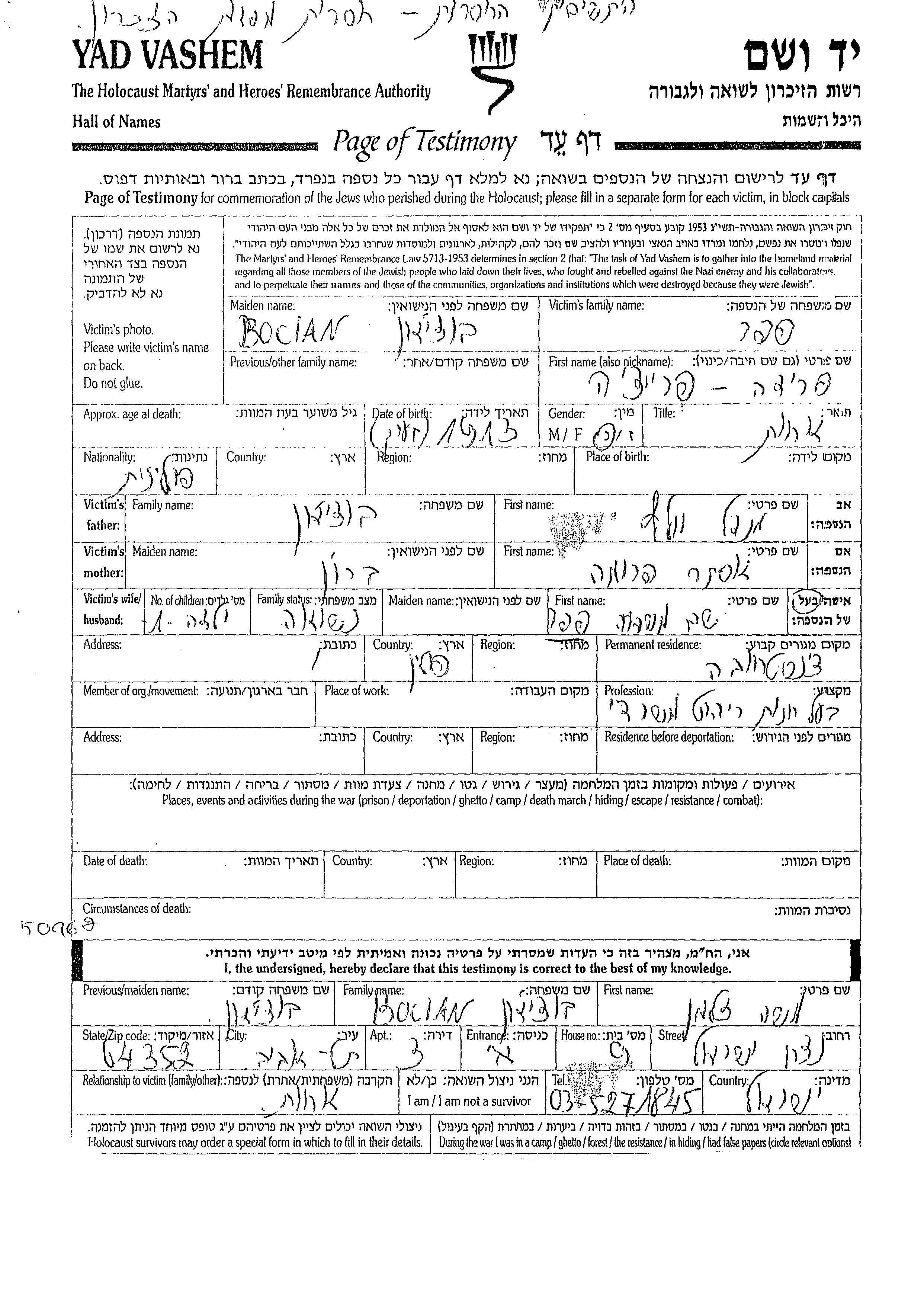 יד ושם - המפעל להנצחת השמות בדפי עד