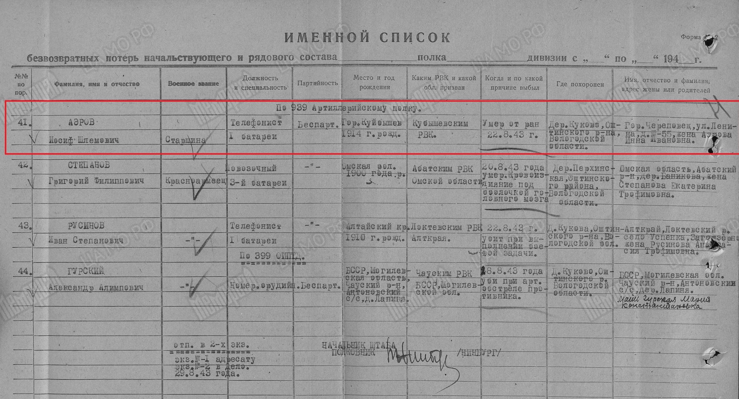 אארוב Iosif 1914 Kuybyshev, רוסיה (ברה"מ) Death list