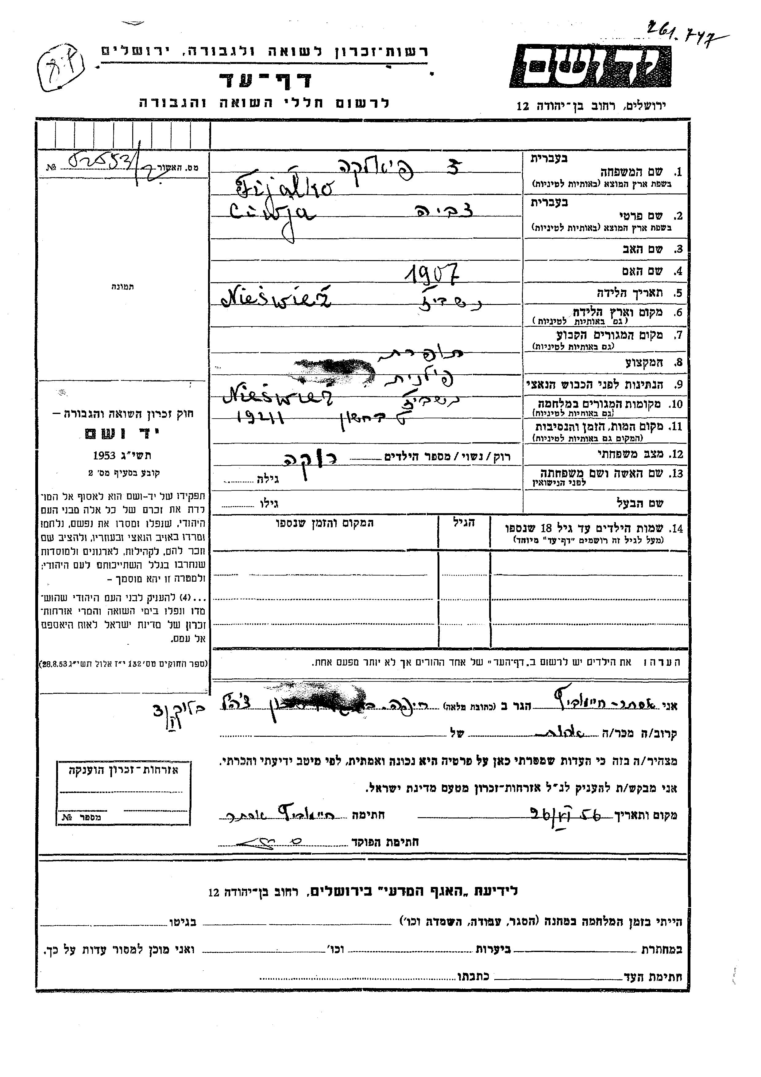 יד ושם - המפעל להנצחת השמות בדפי עד