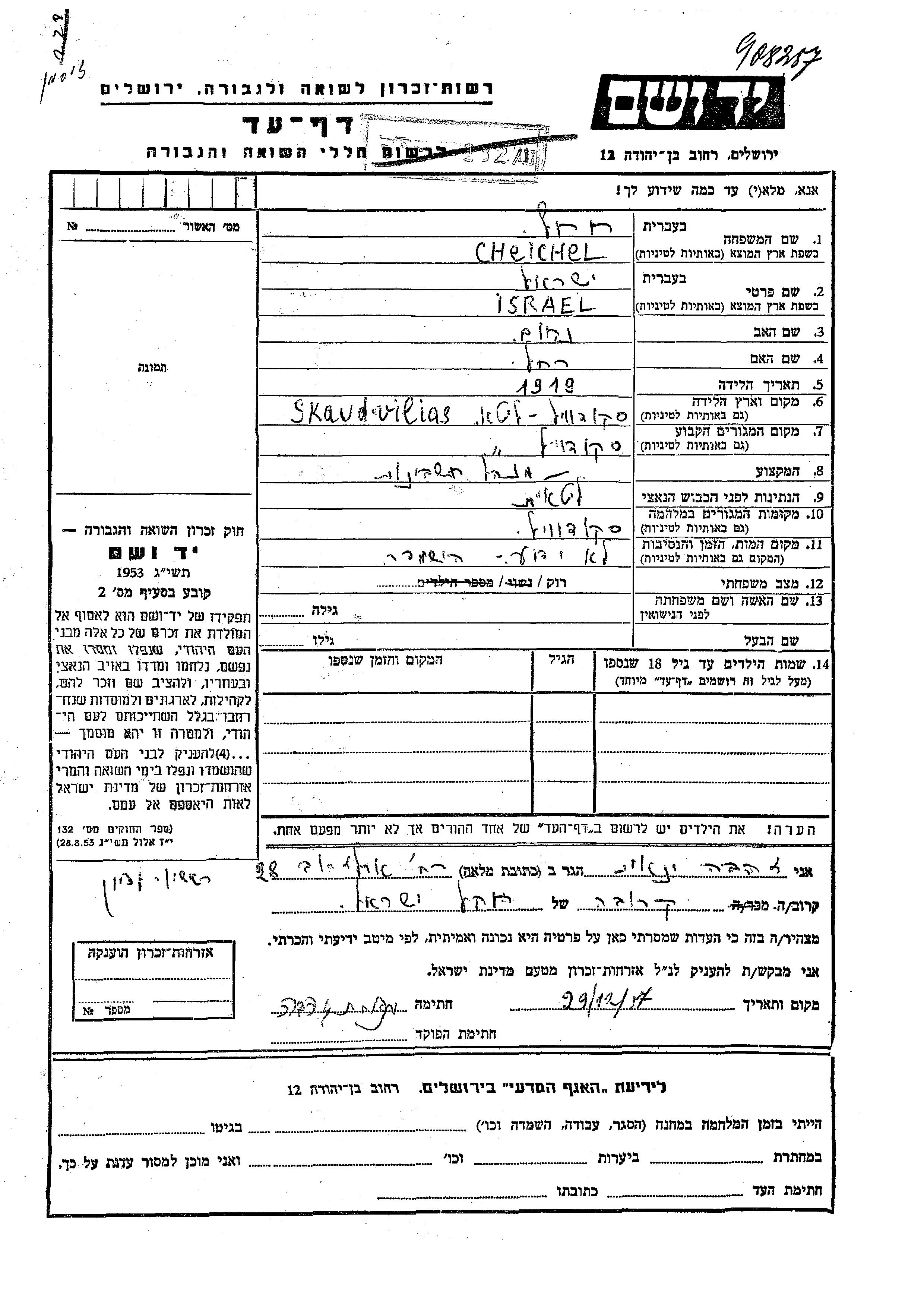 צייצל חחל Israel 1919 Skaudvilė, ליטא דף-עד