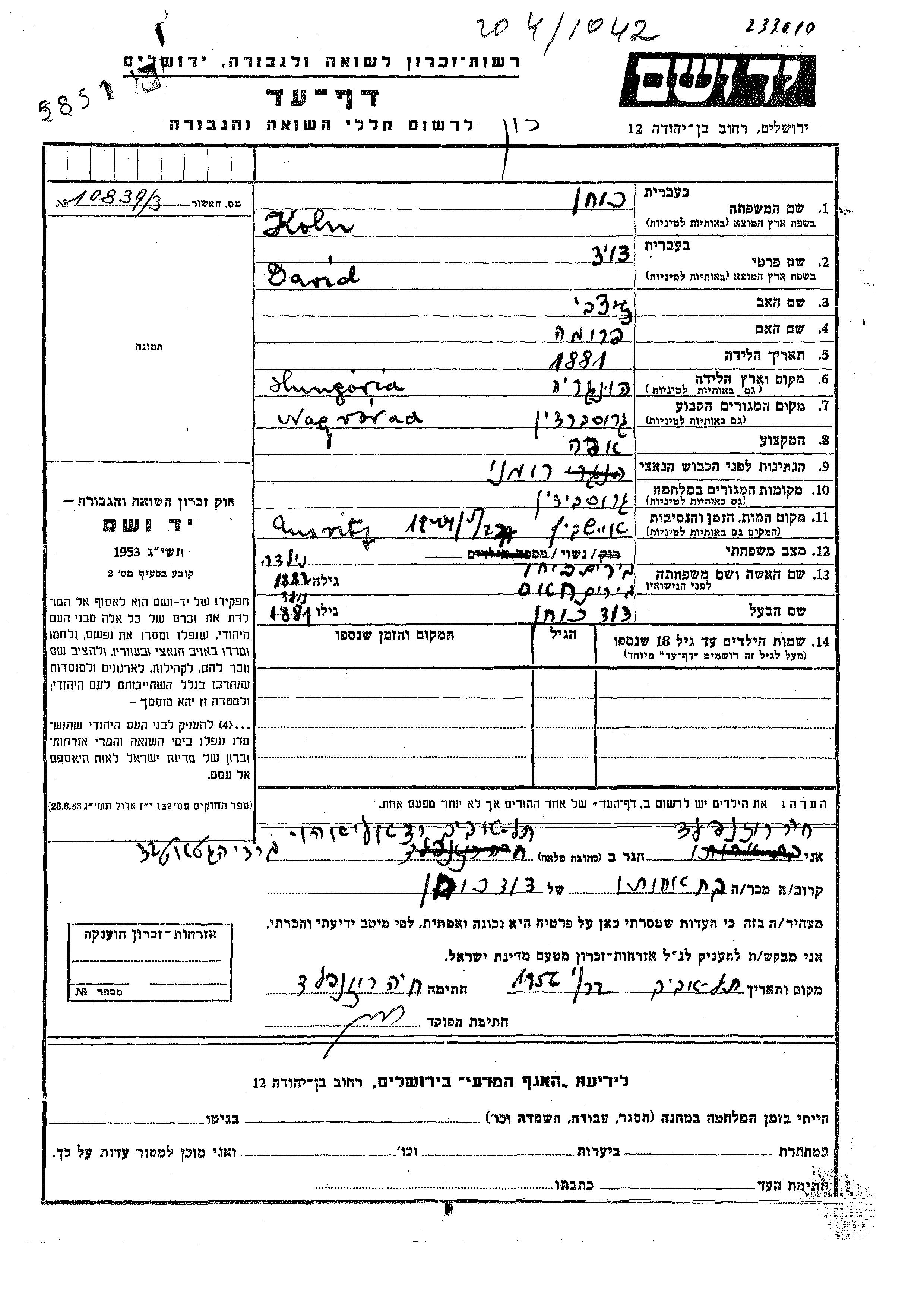 יד ושם - המפעל להנצחת השמות בדפי עד
