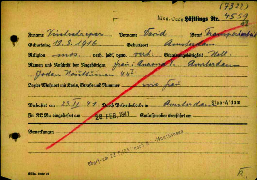 Vischschraper דוד 1916 Amsterdam, הולנד רשימת יהודים נרצחים מהולנד