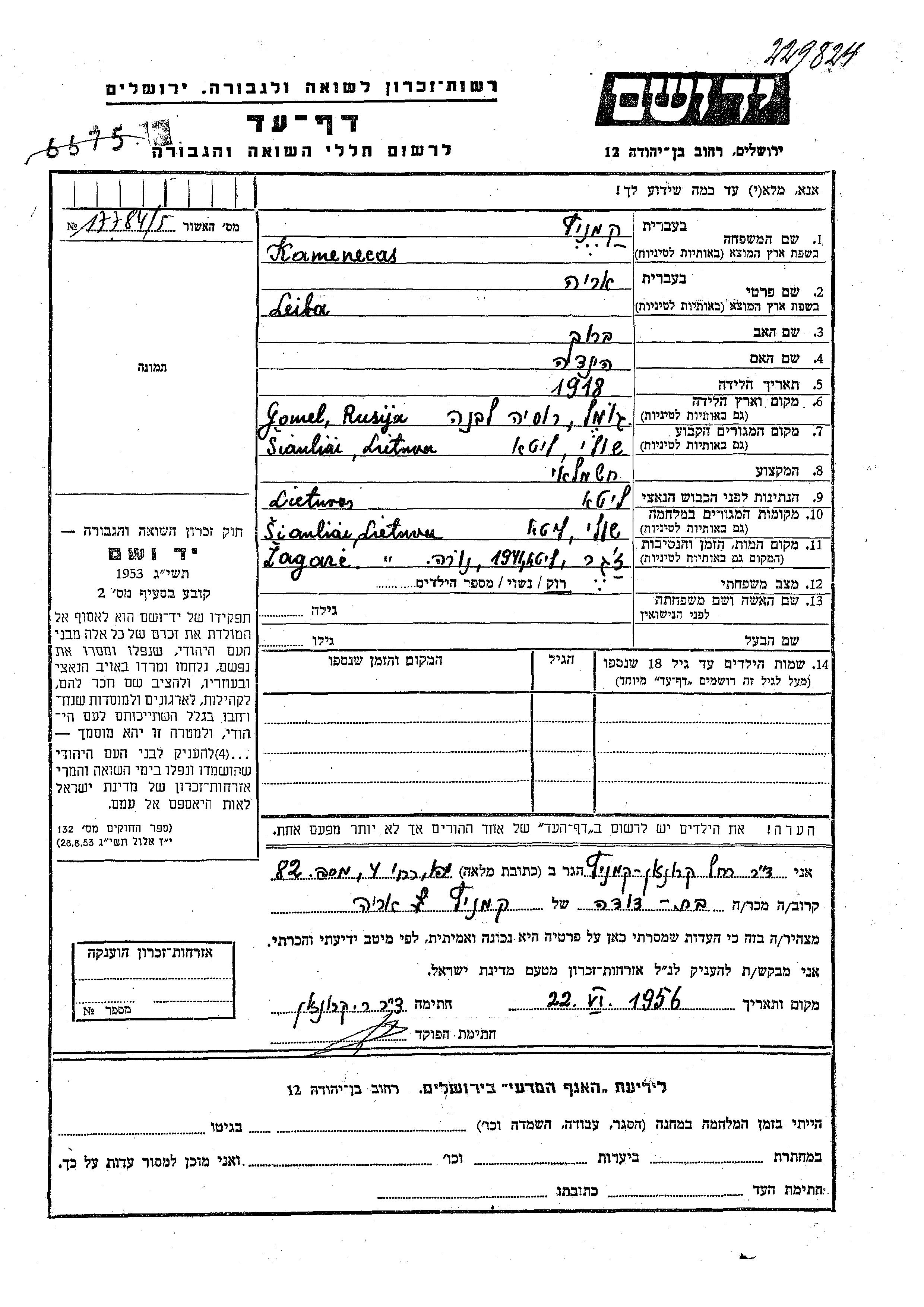Kamenecas Leiba אריה 1918 Šiauliai, ליטא דף-עד