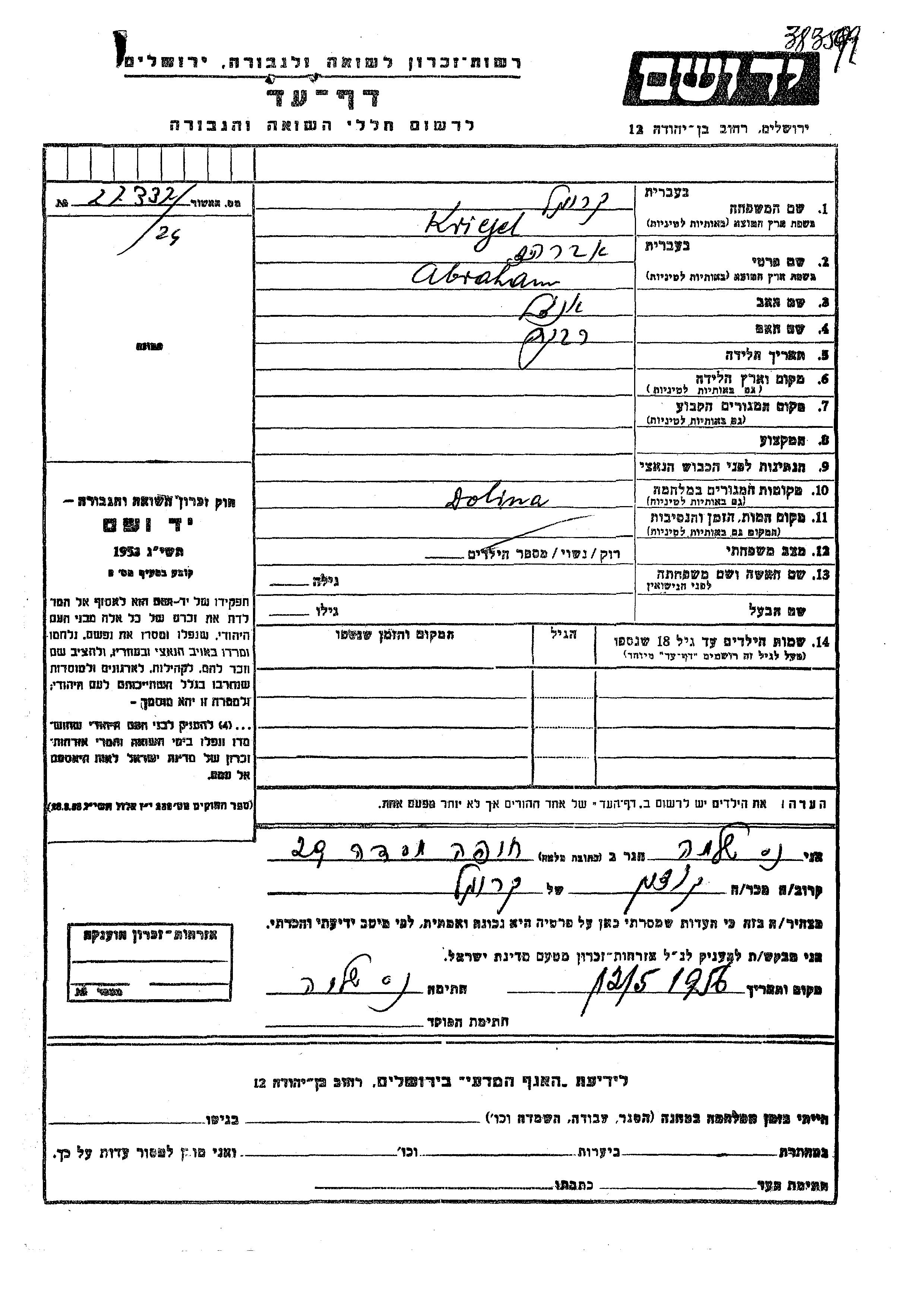 קריגל Abraham מקום לא רשום, דף-עד
