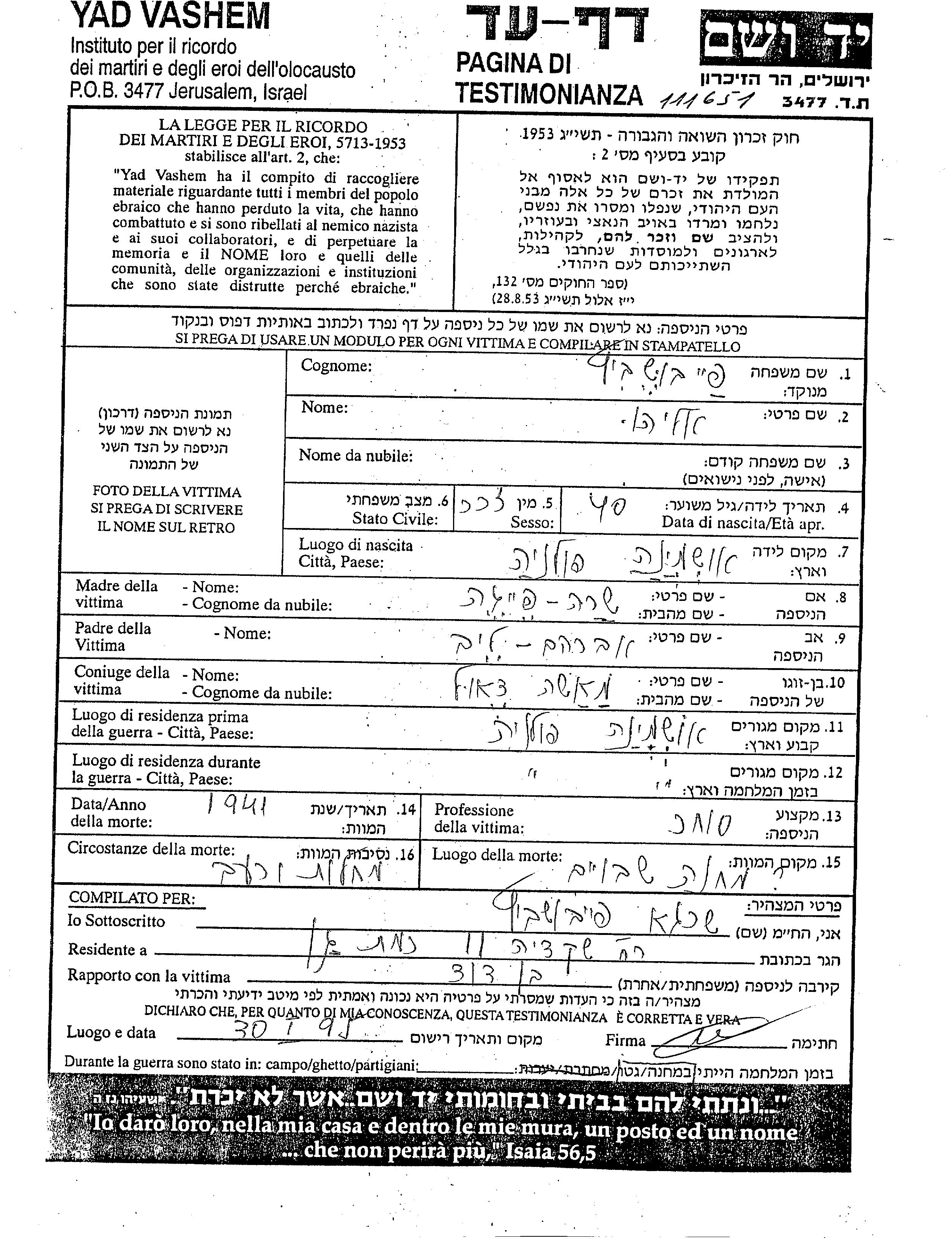 הוא נרצח בשואה. מקום המוות: מקום לא רשום בשנת 1941.