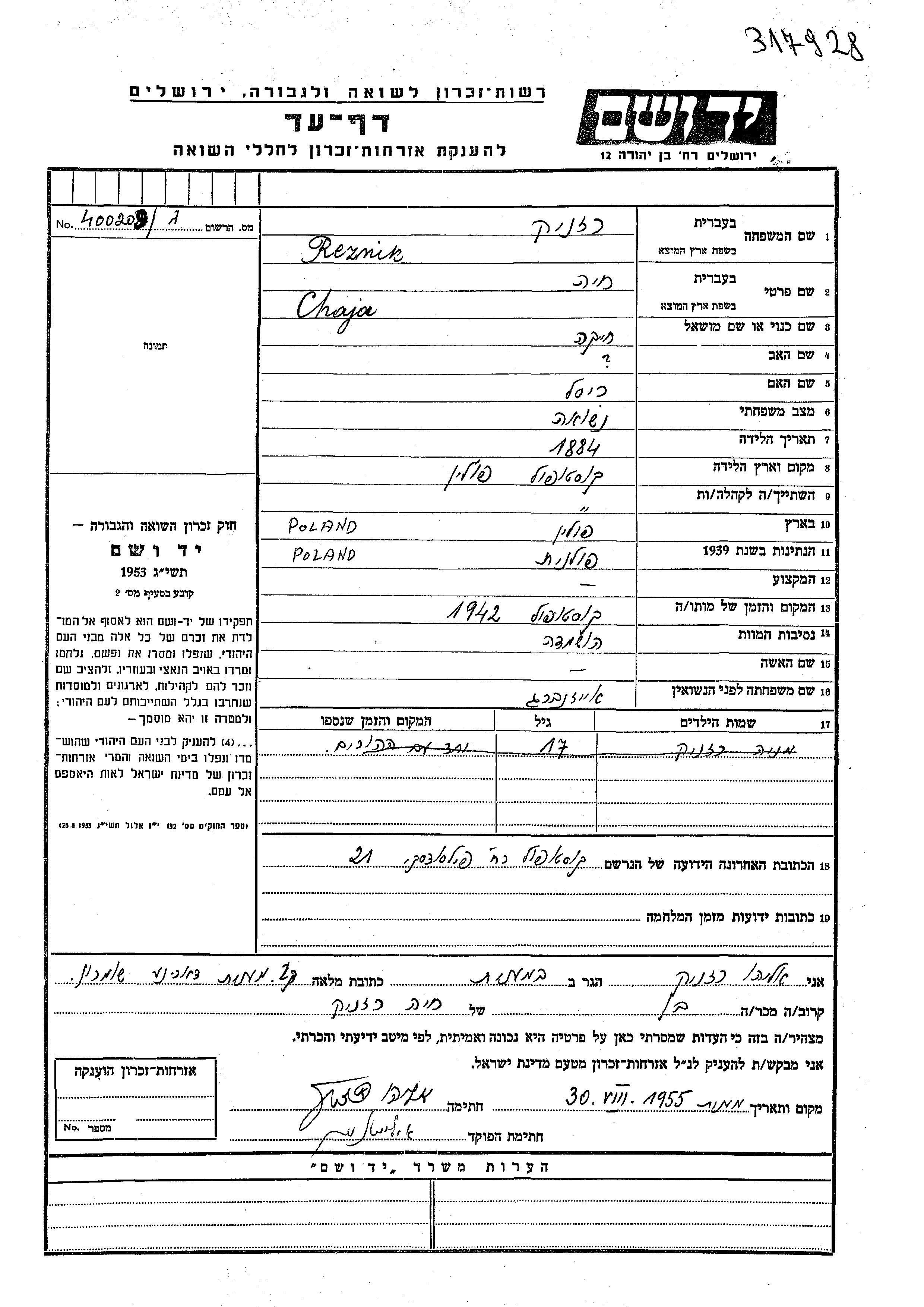 רזניק Chaja 1884 Kostopol, פולין דף-עד