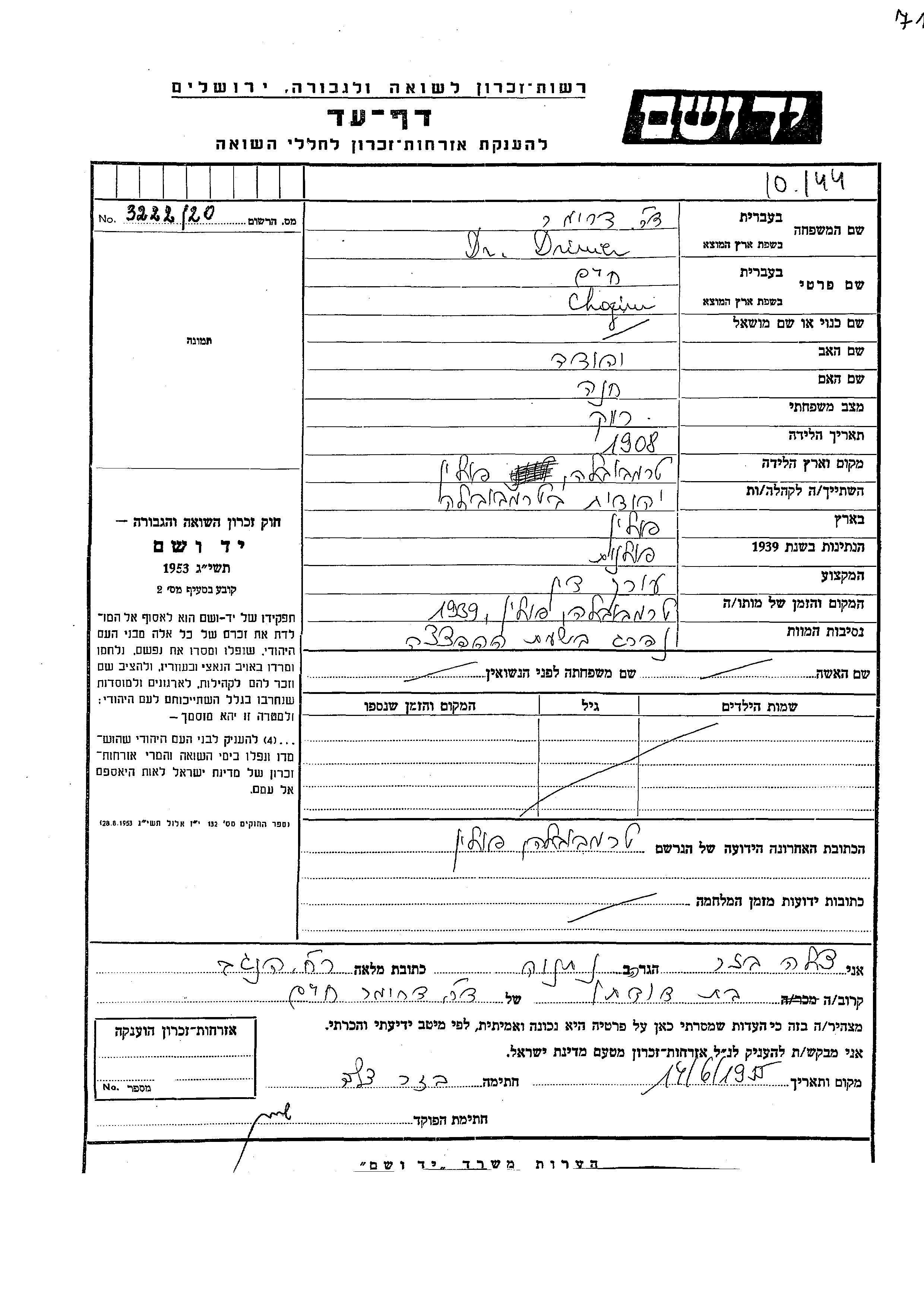 חיפוש שם מוסר דף העד. חיפוש לפי כל שם פרטי, כולל כינוי או שם חיבה