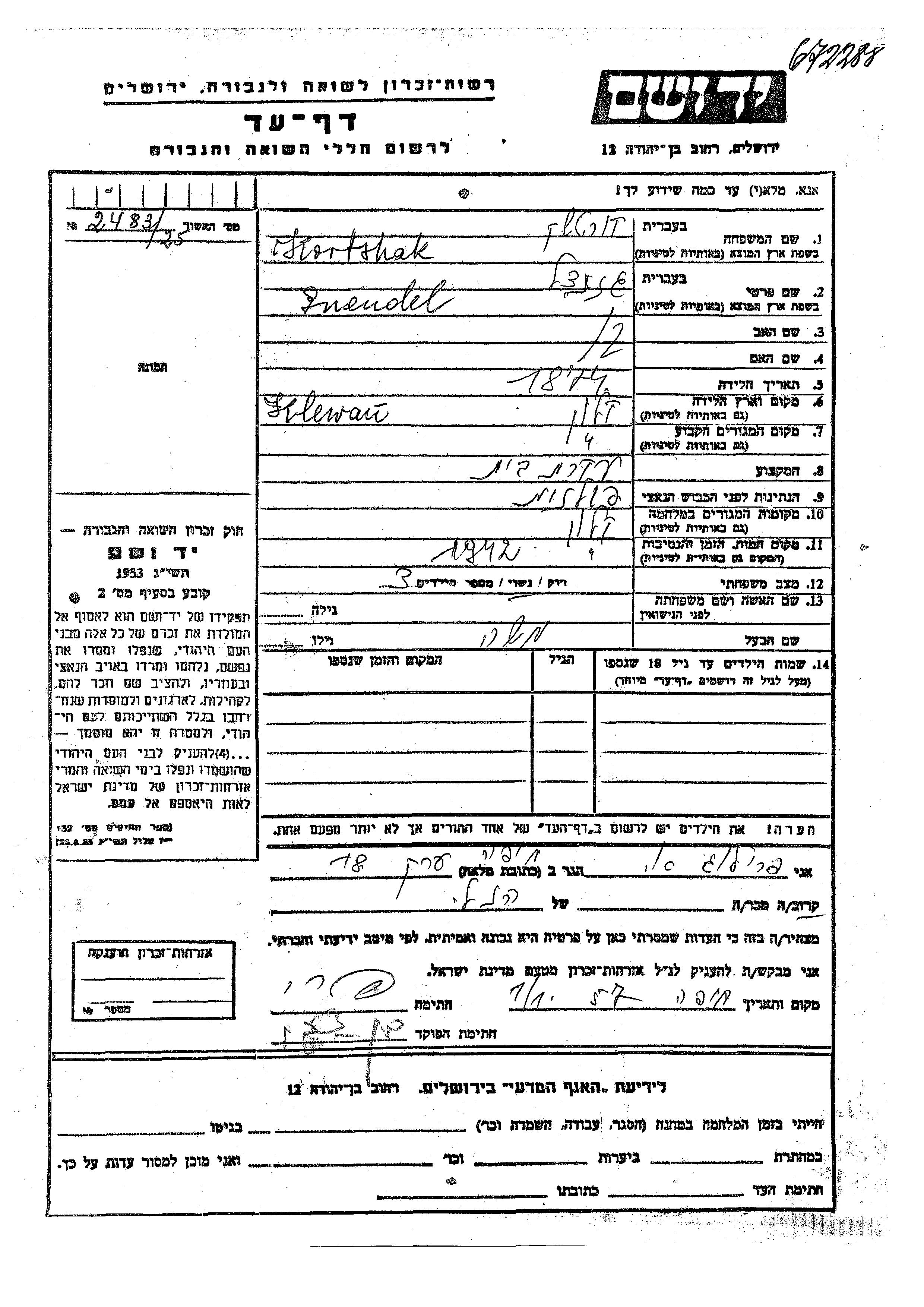 יד ושם - המפעל להנצחת השמות בדפי עד