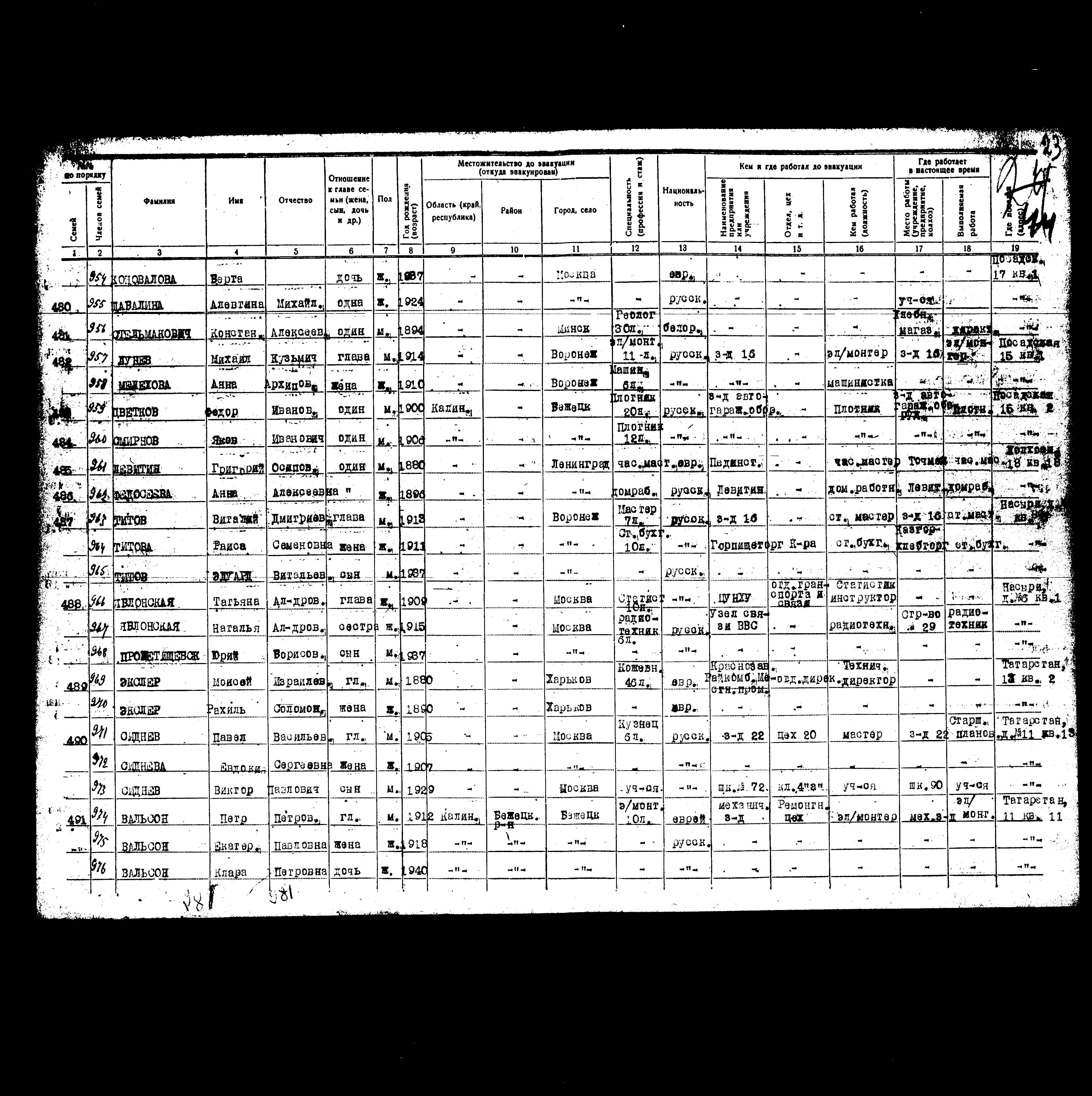 רשימת תושבים שפונו ל- Kazan, שהוכנה בשנת 1942