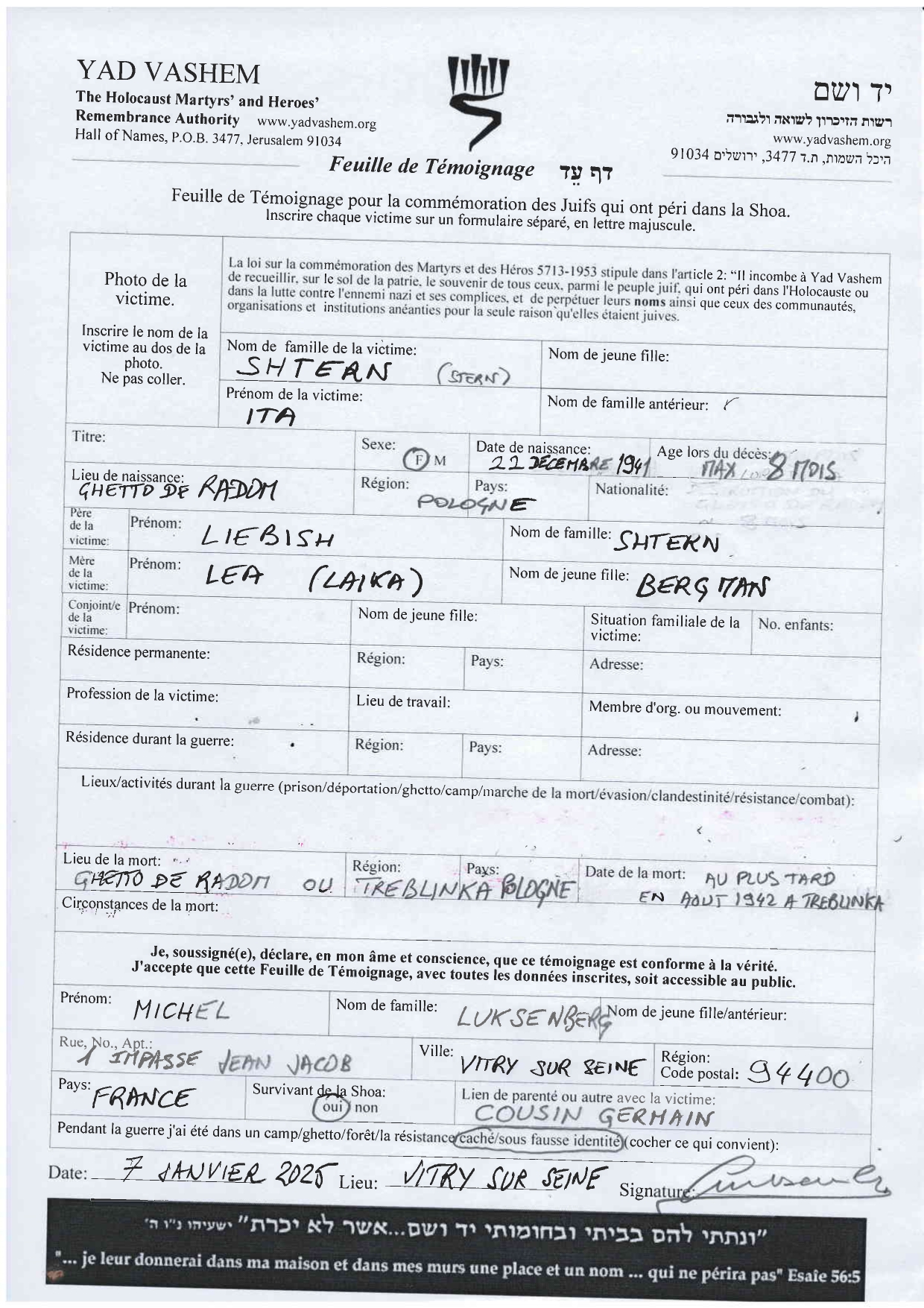 She was either murdered in the Radom ghetto or deported to the Treblinka extermination camp.