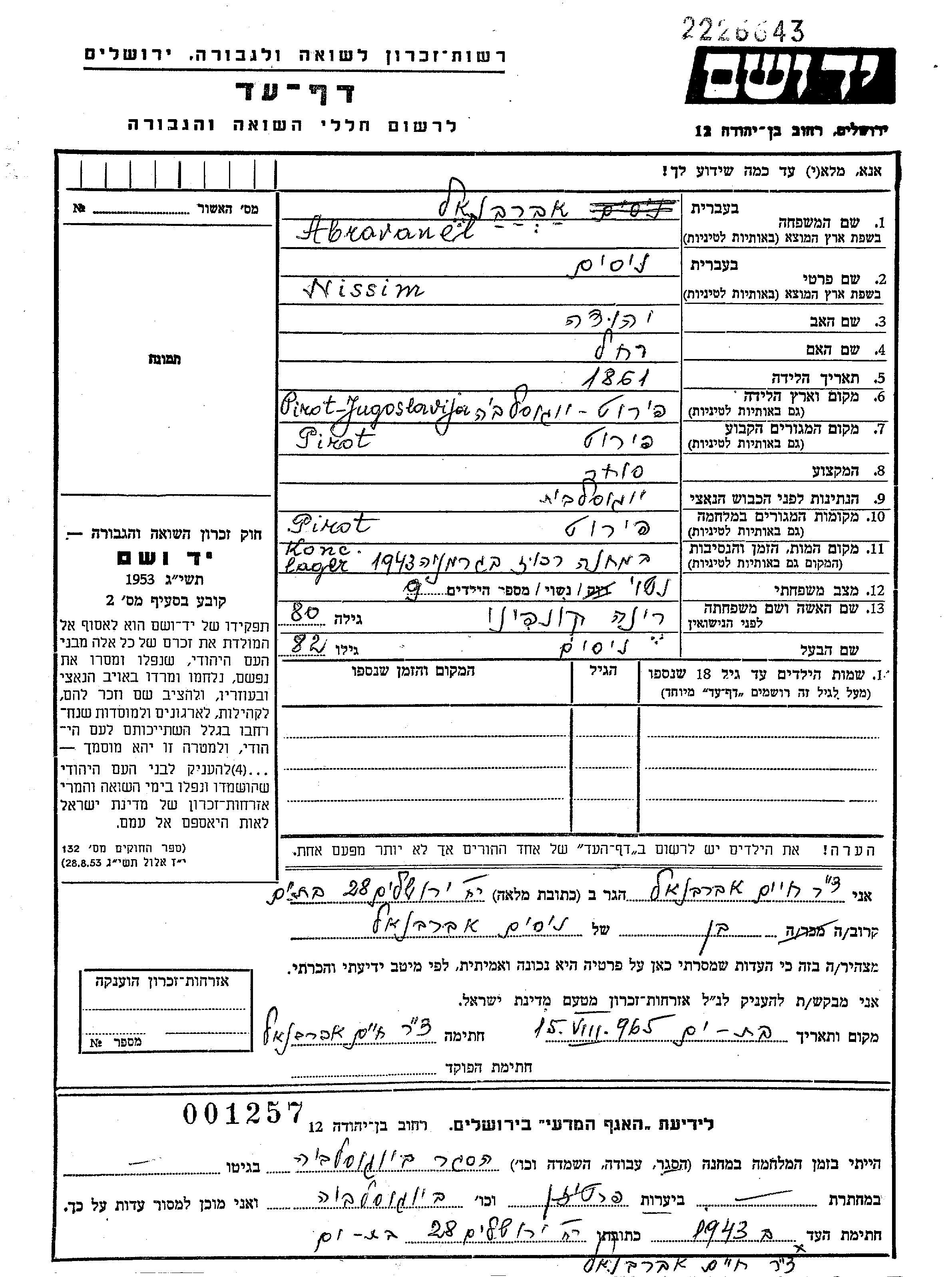 חיפוש שם מוסר דף העד. חיפוש לפי כל שם פרטי, כולל כינוי או שם חיבה