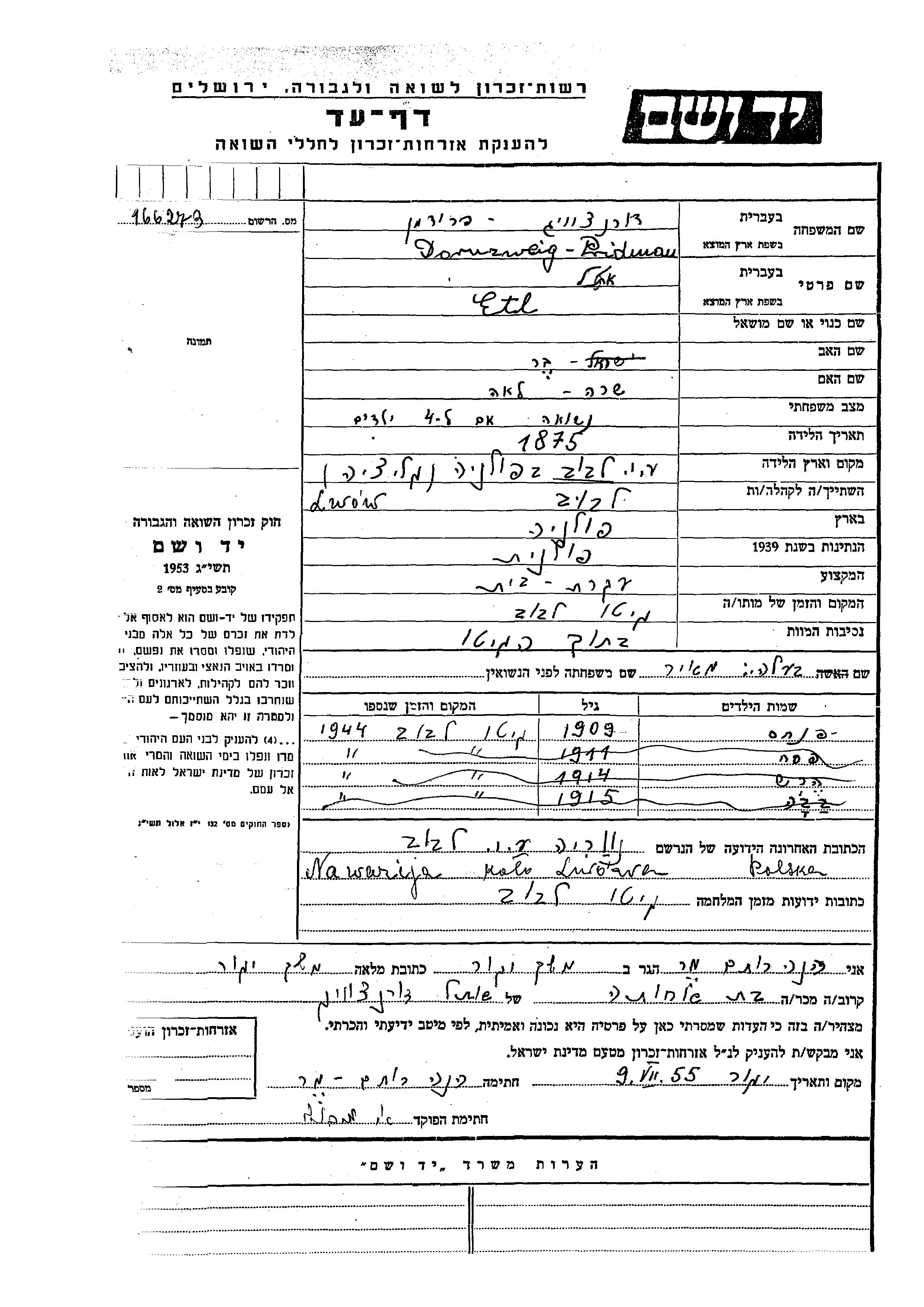 יד ושם - המפעל להנצחת השמות בדפי עד