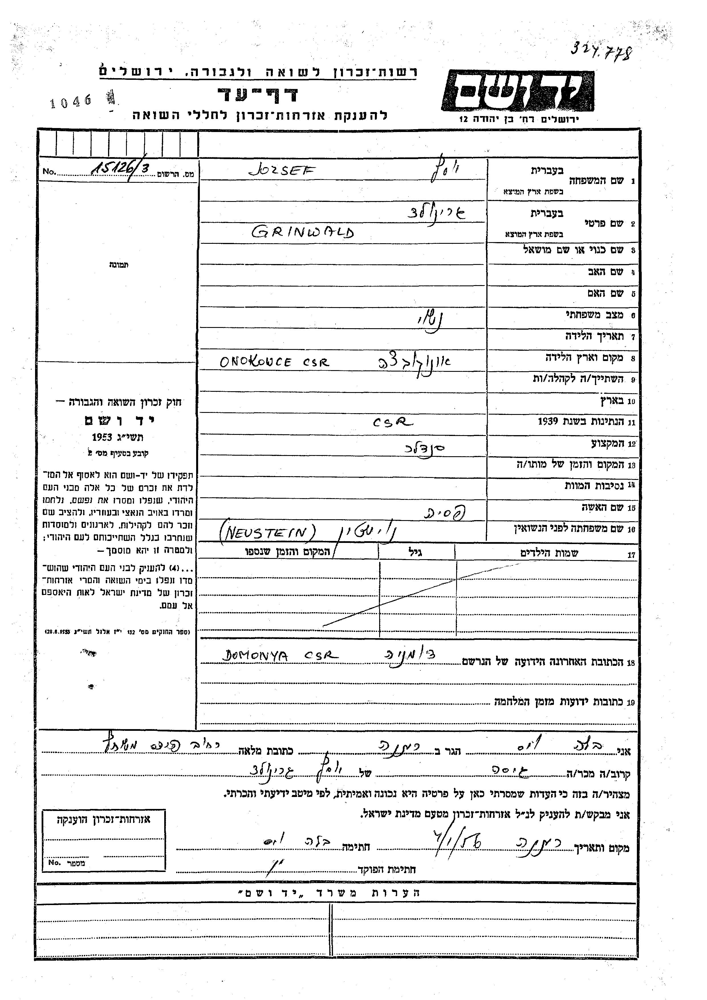 Grinwald Jozsef מקום לא רשום, דף-עד