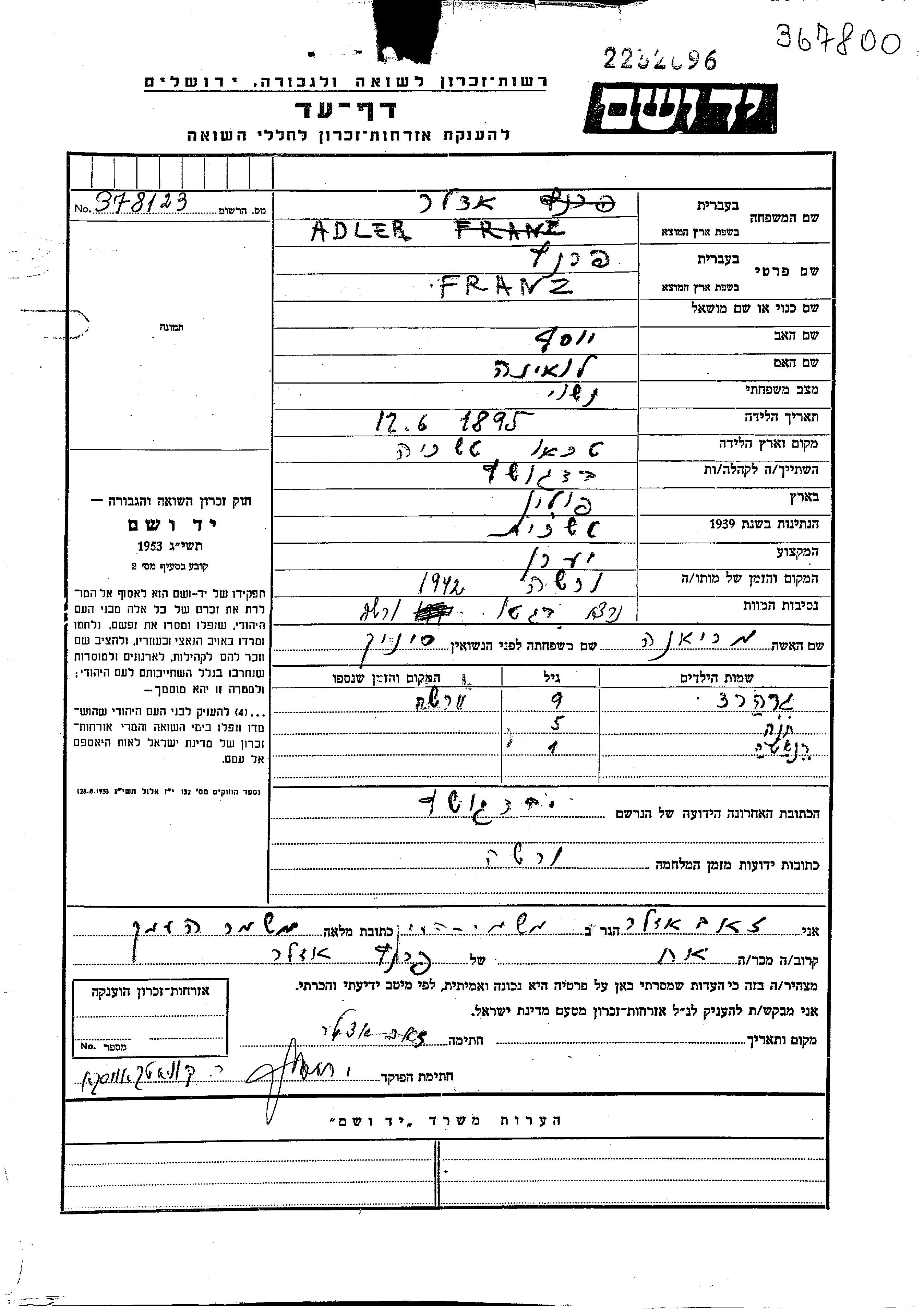אדלר Franz פרנץ 1895 Bydgoszcz, פולין דף-עד