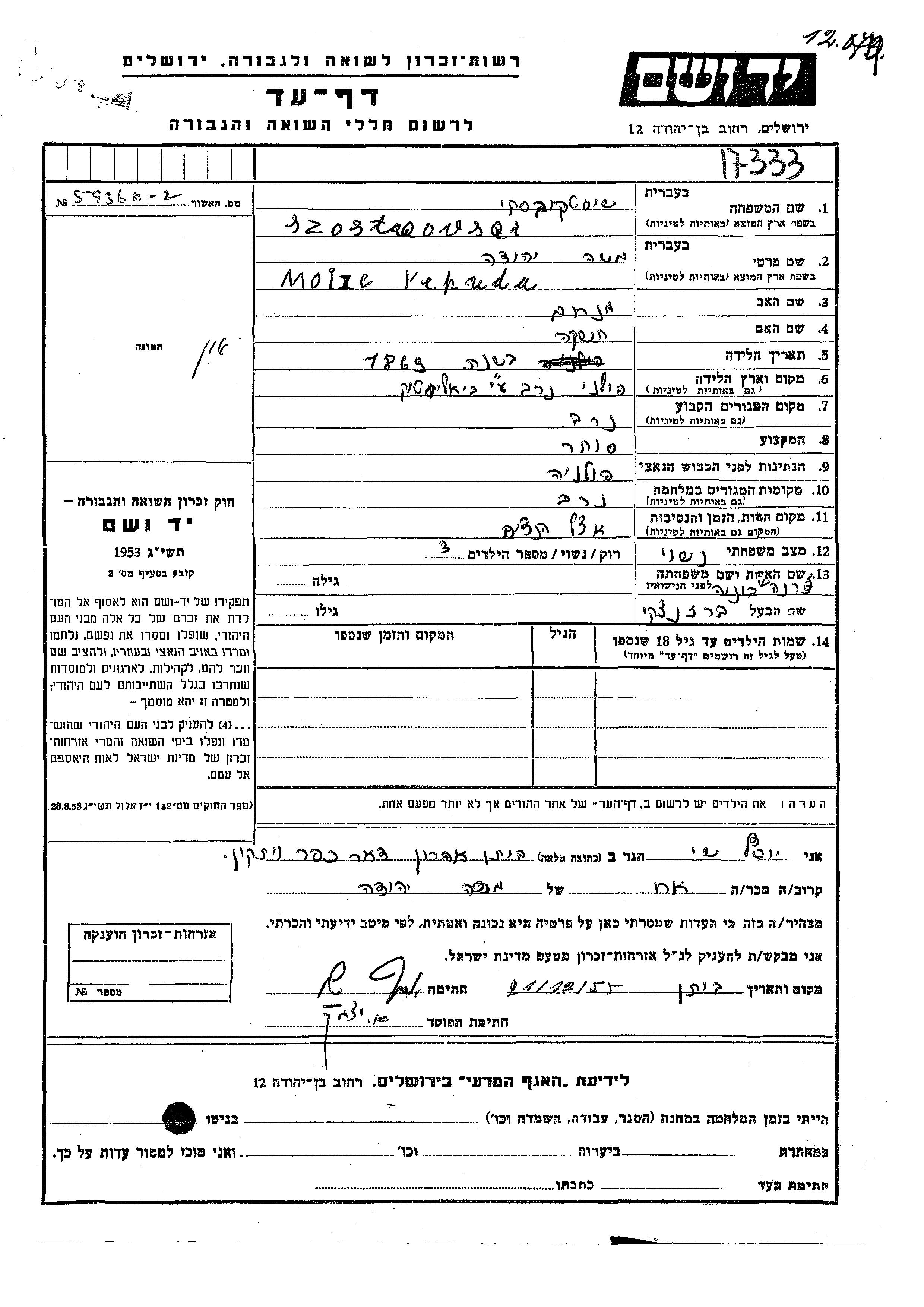 יד ושם - המפעל להנצחת השמות בדפי עד