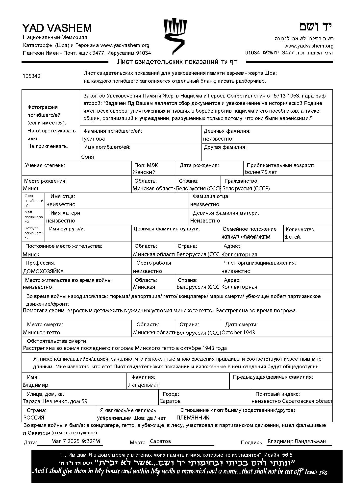 | Gusinova | Sonya | Minsk, ביאלורוסיה (ברה"מ) | דף-עד (מקוון) | |