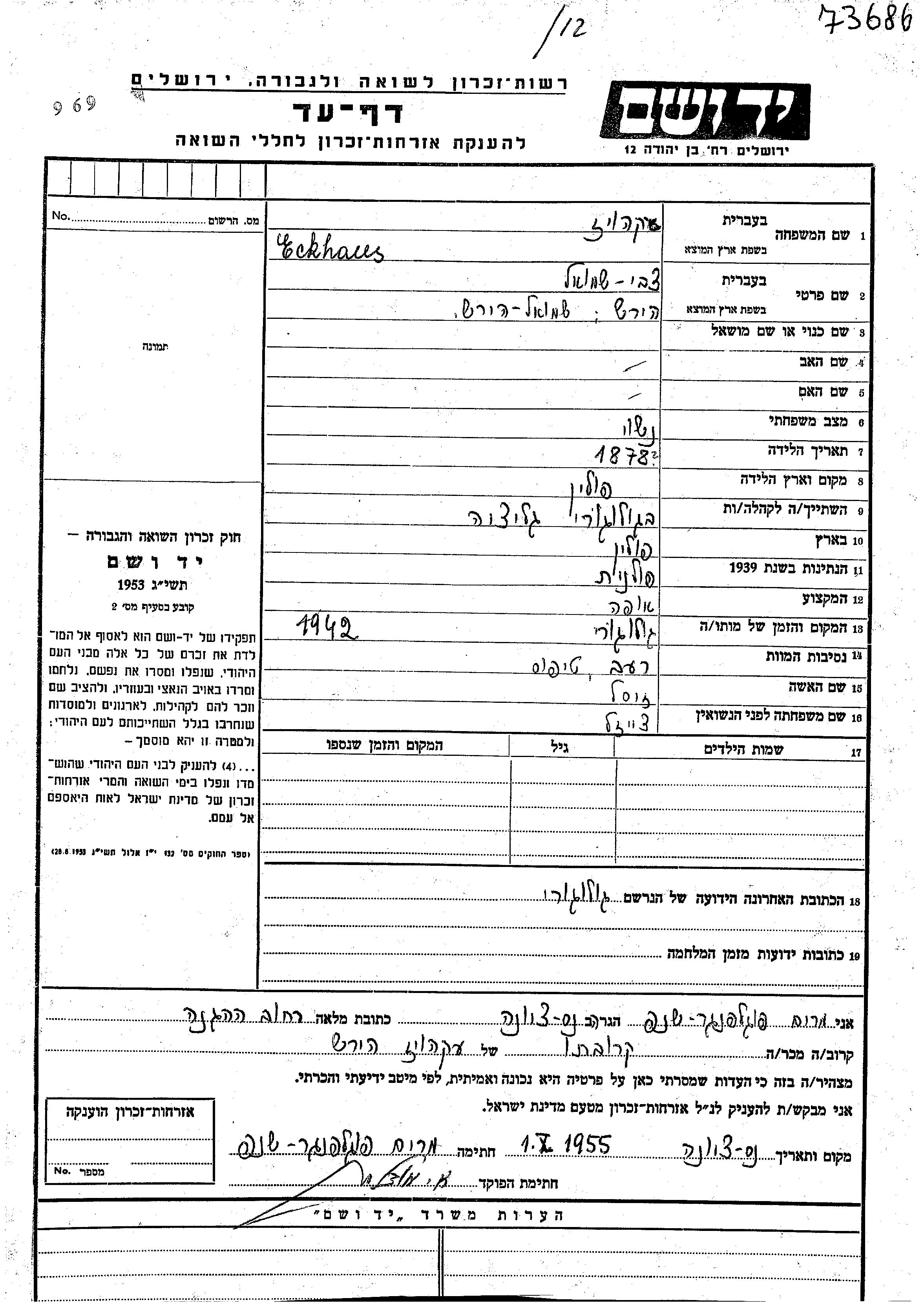 יד ושם - המפעל להנצחת השמות בדפי עד