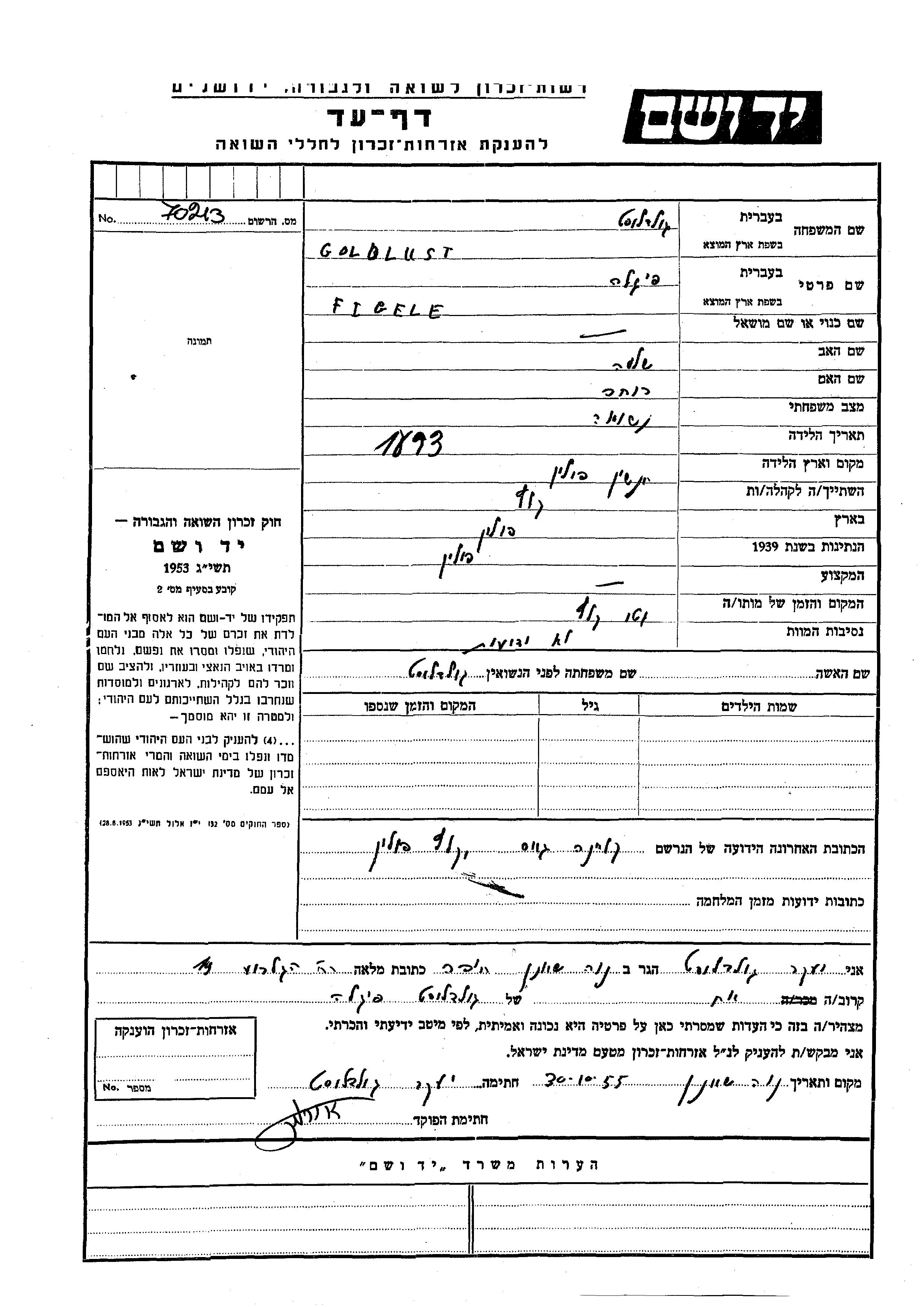 יד ושם - המפעל להנצחת השמות בדפי עד