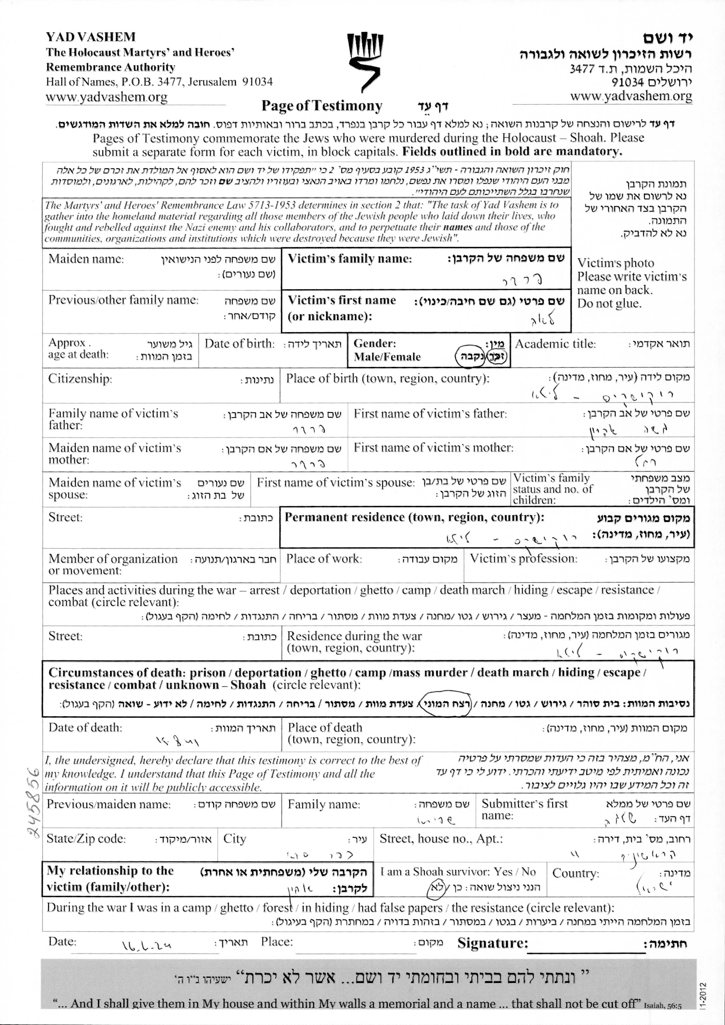 יד ושם - המפעל להנצחת השמות בדפי עד