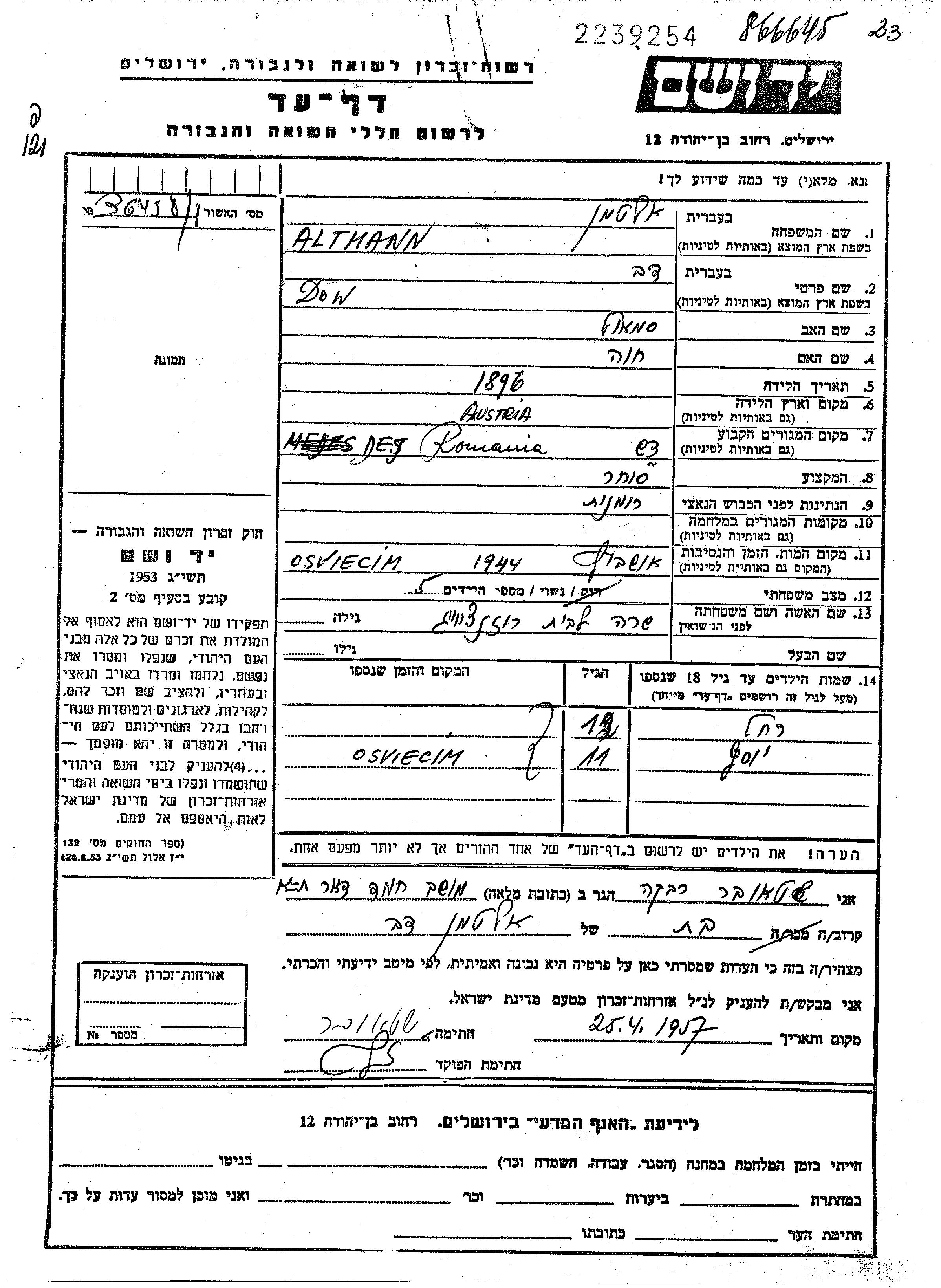 חיפוש שם מוסר דף העד. חיפוש לפי כל שם פרטי, כולל כינוי או שם חיבה